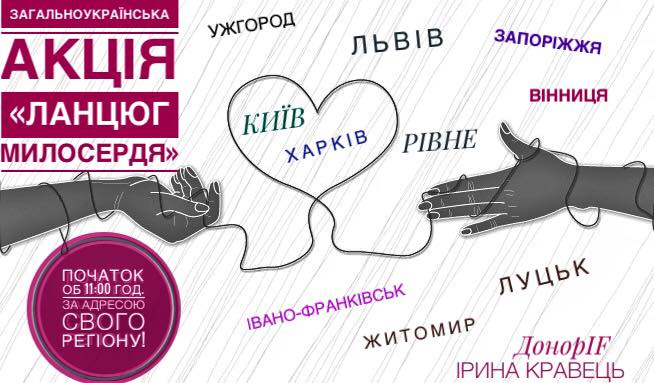 22 січня у День Соборності України у Луцьку та низці інших обласних центрів буде проводитися загальноукраїнська акція «Ланцюг милосердя», йдеться на сторінці ДонорIF у Фейсбуці.