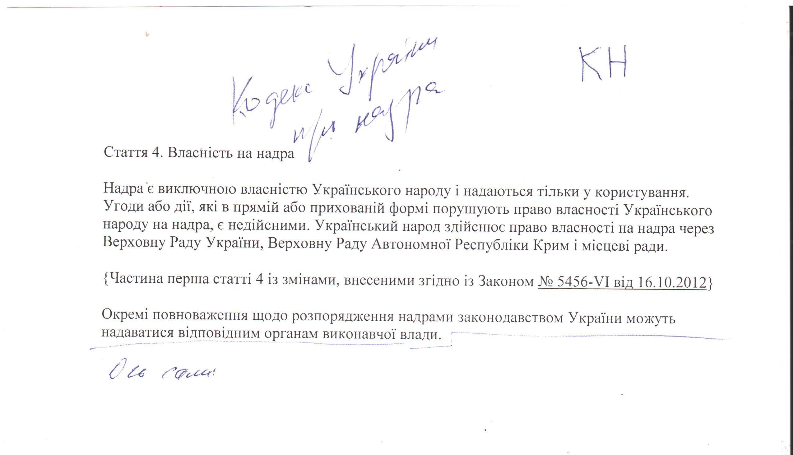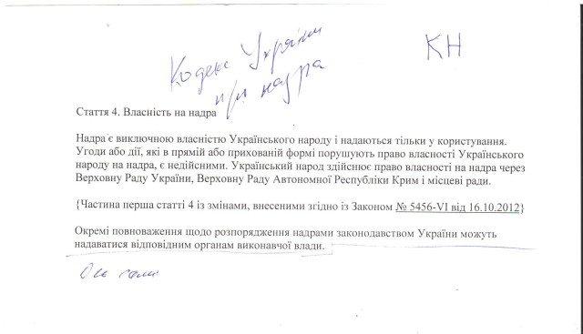 Згідно з законом, усі надра належать народу України. Так говорить Кодекс України про надра та Конституція України: