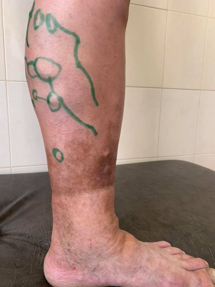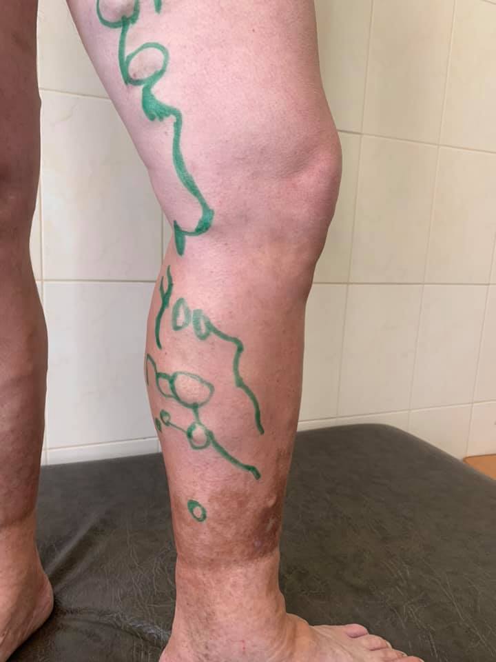 При обстеженні пацієнта я виконав УЗД нижніх кінцівок, зробив маркування вен. Зі своїм колегою Сергієм Пісачуком під місцевим знеболенням ми виконали пацієнту ендовенозну лазерну абляцію великої підшкірної вени та за допомогою мініфлебектомії видалили розширені притоки на стегні і гомілці. Пацієнту було проведено перев‘язку та відпущено додому», – розповів лікар.