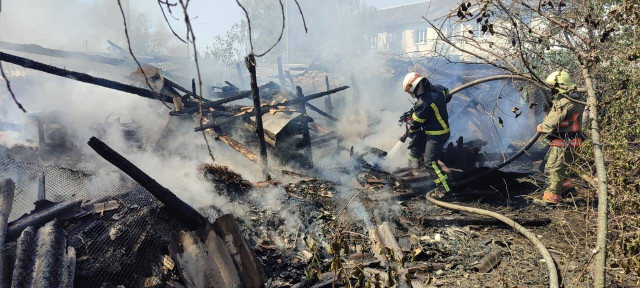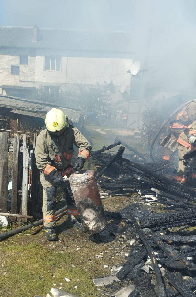 В одній з комірчин рятувальники виявили газовий балон. Вони подали воду на його охолодження й згодом відтягнули від епіцентру горіння, запобігши вибуху. Крім того, завадили перекиданню вогню на розташовані поруч такі ж будівлі.