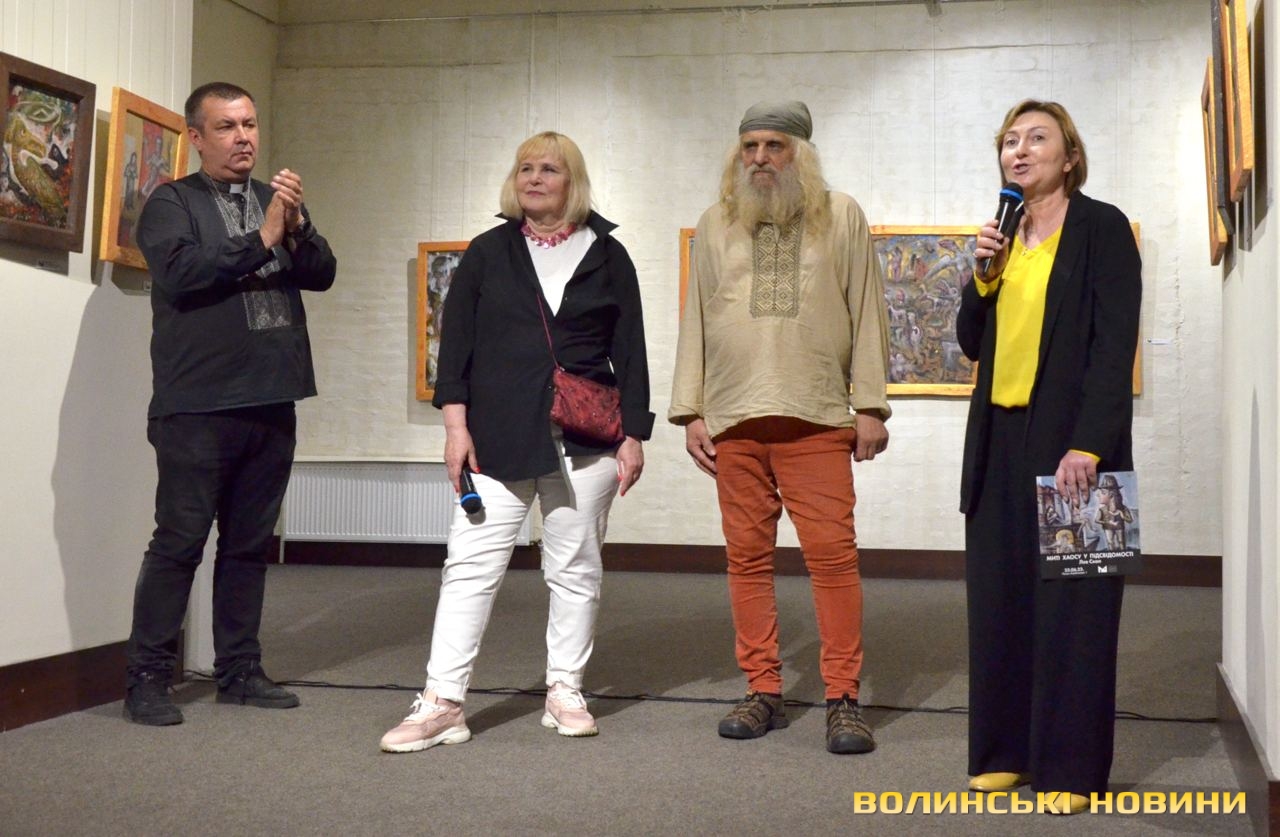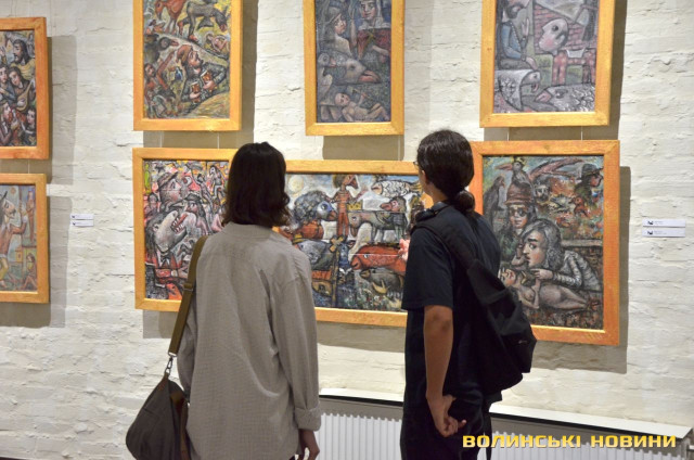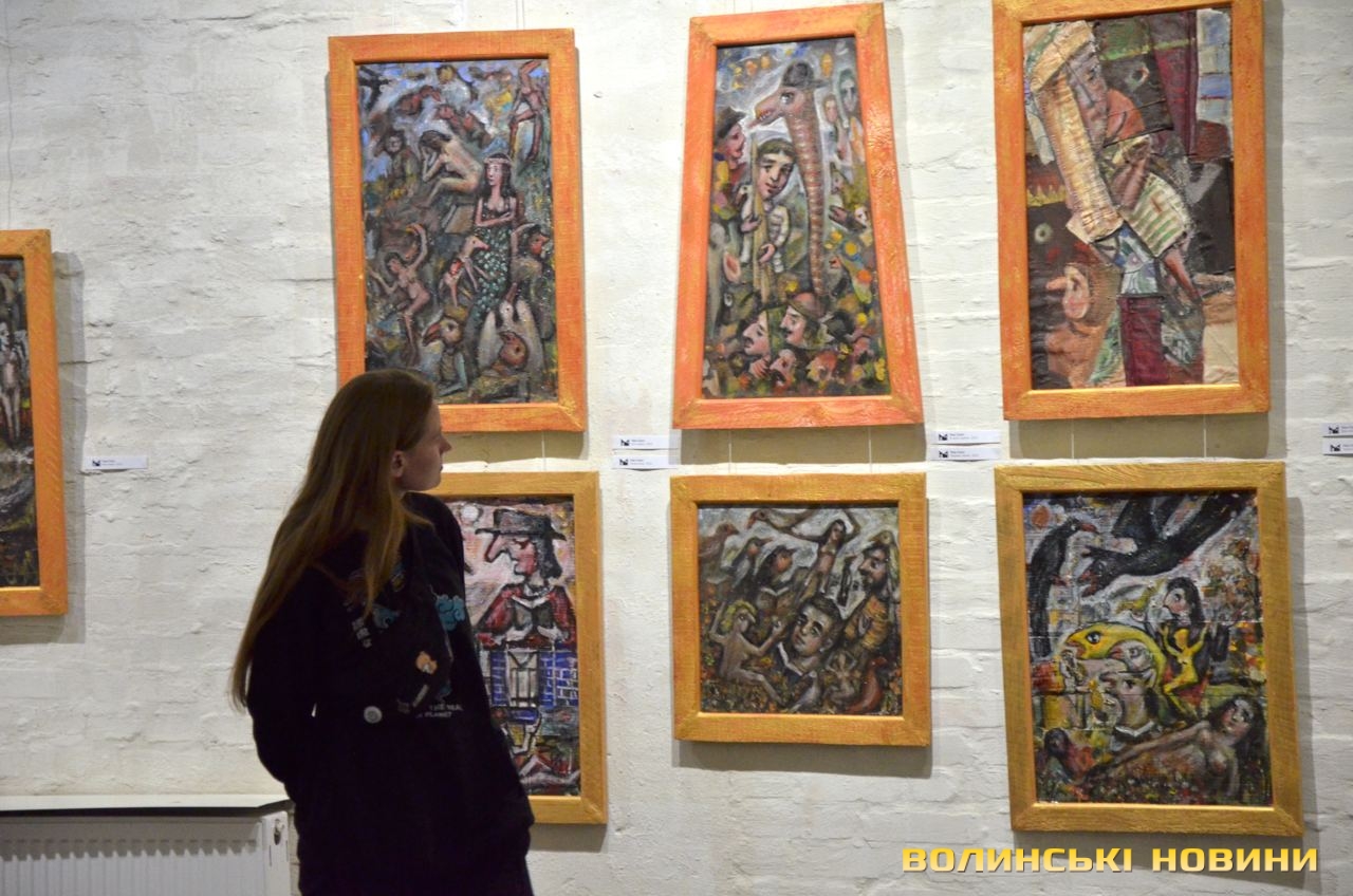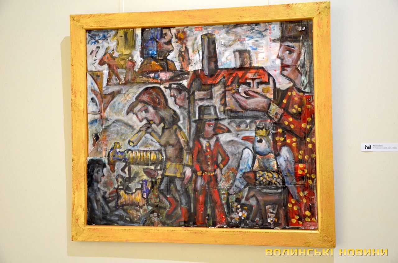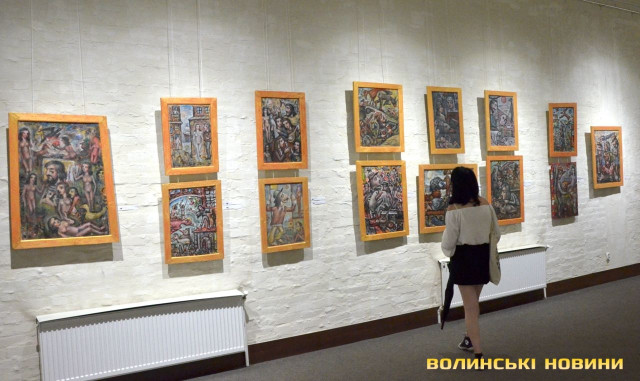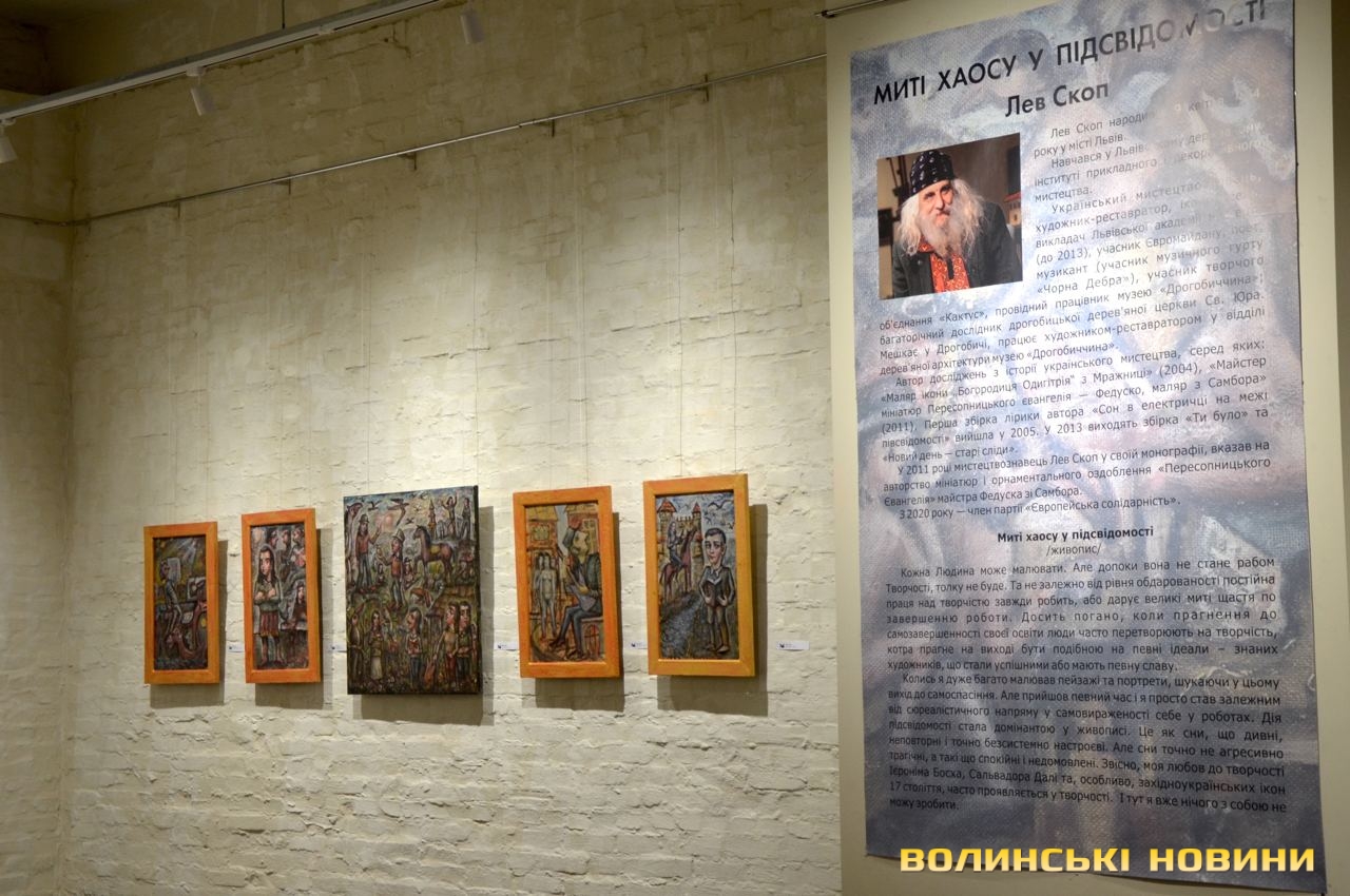 69-річний український художник Лев Скоп від початку війни, із 2014 року, малює образи святих для бійців на фронті. Також він виставляє свої роботи на аукціони, а виручені кошти перераховує важкохворим і Збройним силам. Однак у Луцьку автор представив не ікони, а «миті хаосу».