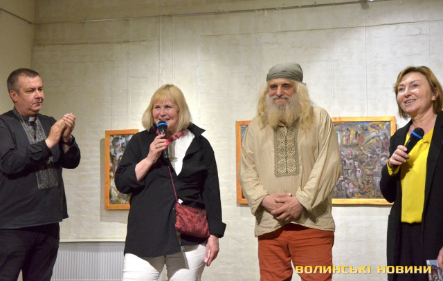 Вона розповіла, що художник є ще й волонтером і часто їздить на передову. Окрім того, митець передав на позиції військовослужбовцям понад чотири тисячі ікон свого авторства.