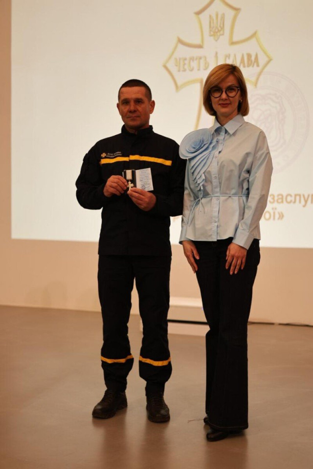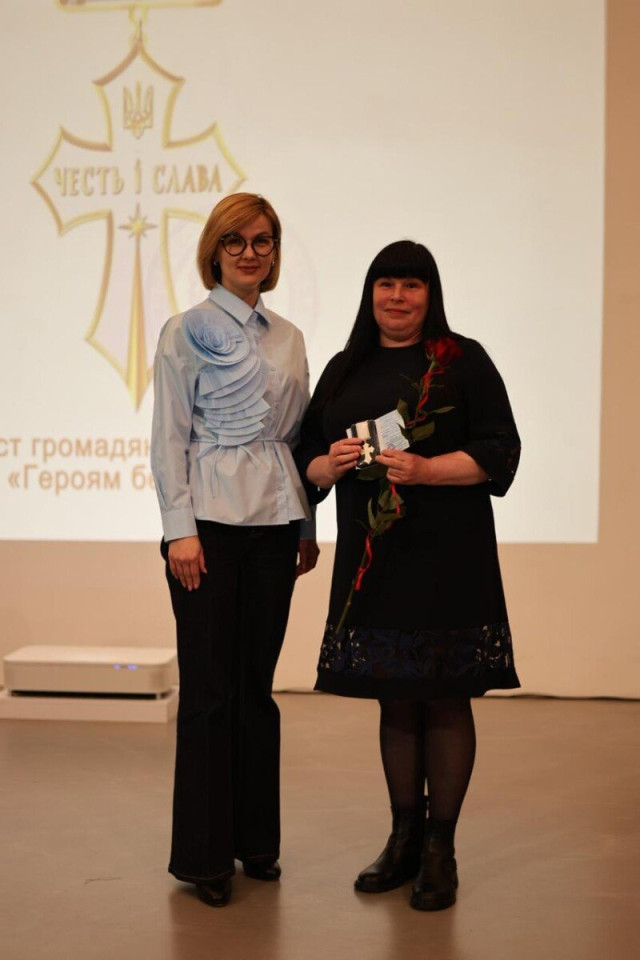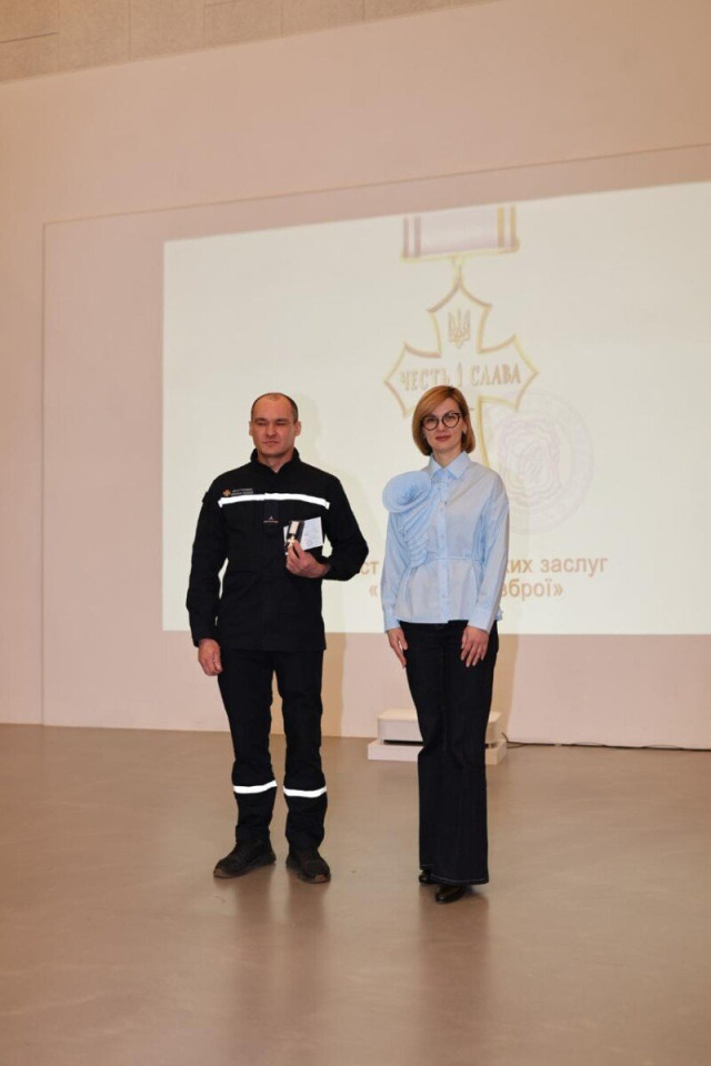 «Проте без тих людей, які тут і сьогодні ліквідовують наслідки обстрілів, допомагають цивільному населенню, волонтерять також неможливо цю перемогу наближати. Великі слова вдячності вам. Переконана, що нагород у цей час не може бути багато, але вони мають бути заслуженими. Щиро вірю, що як мир настане, ми з гідністю зможемо згадувати цей час і говорити, що ми вистояли і також завдяки таким людям як ви», – наголосила вона.Після вітальних слів Катерина Шкльода вручила відзнаки: