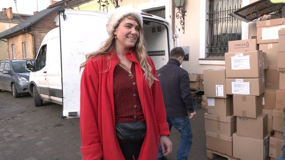 Волонтерка Олександра Лисак цього разу збирається вирушати на південний напрямок. Перед цим була поїздка у Бахмут, де в ролі помічниці Святого Миколая роздавала подарунки дітям.