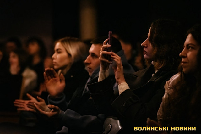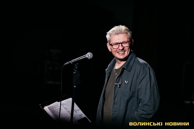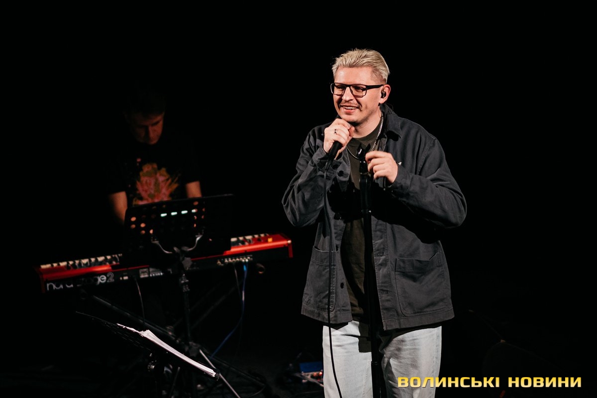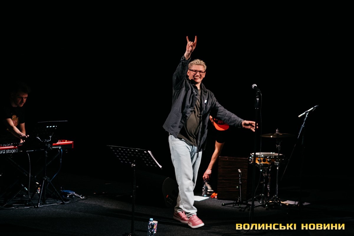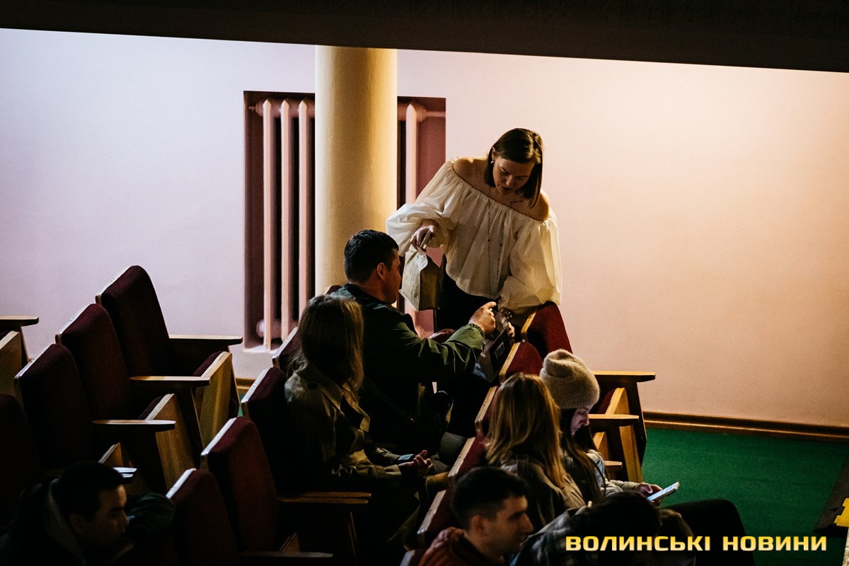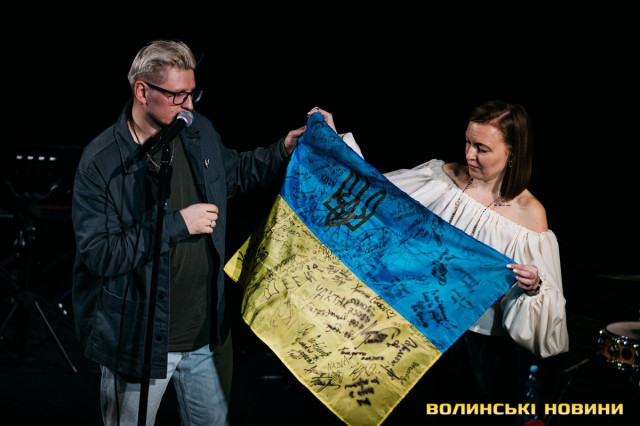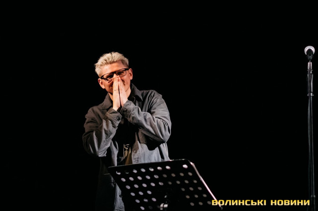 Неймовірно атмосферно звучали вірші Сергія Мартинюка в авторському виконанні.Під час концерту вже традиційно фронтмен «Фіолету» провів аукціон, кошти з якого підуть на «Мавіки» для 77-ї окремої аеромобільної бригади, яка працює на Купʼянському напрямку.«Ви знаєте, що «Мавіки» – річ недешева, але в умовах війни є розхідником. Тож ми із друзями з «Ангару» збираємо на них гроші. Маємо зібрати мільйон гривень. Вже понад 700 тисяч є, тож сподіваємося, що під час туру вдасться закрити цей збір і допомогти хлопцям та дівчатам», – висловив надію Сергій Мартинюк.І варто сказати, що шанувальники з Луцька його не підвели. Першим з молотка пішов канадський сухпайок для військових. Далі глядачам запропонували придбати синьо-жовтий стяг з автографами українських зірок. Неабияка боротьба між учасниками аукціону розгорнулася за торт із зображенням фронтмена гурту. Останнім лотом став оригінальний світшот, виготовлений у єдиному екземплярі.«Цей светрик наприкінці минулого року мені подарував один з побратимів. Светрик теплий, зимовий, з дуже прикольним принтом. Там написано «Нехай колоситься українська культура», а на колоску – багато моїх задуманих облич. І ми вирішили його, так би мовити, монетизувати. Такого ви точно більше ніде не знайдете», – заохотив Колос учасників аукціону.Читати ще: Українські актори знялися в поетичному проєкті для людей з порушенням слуху та зору