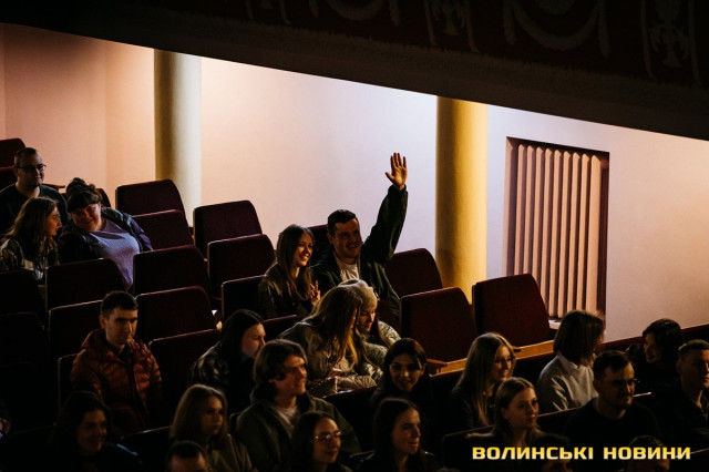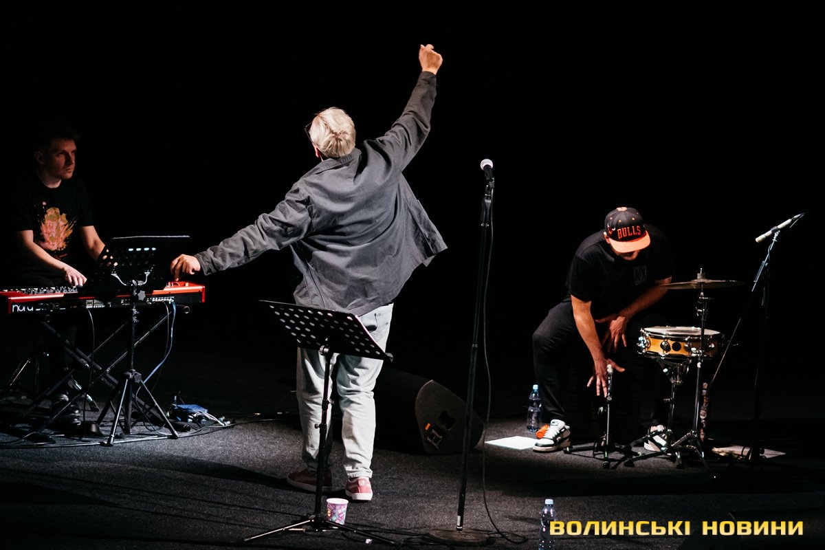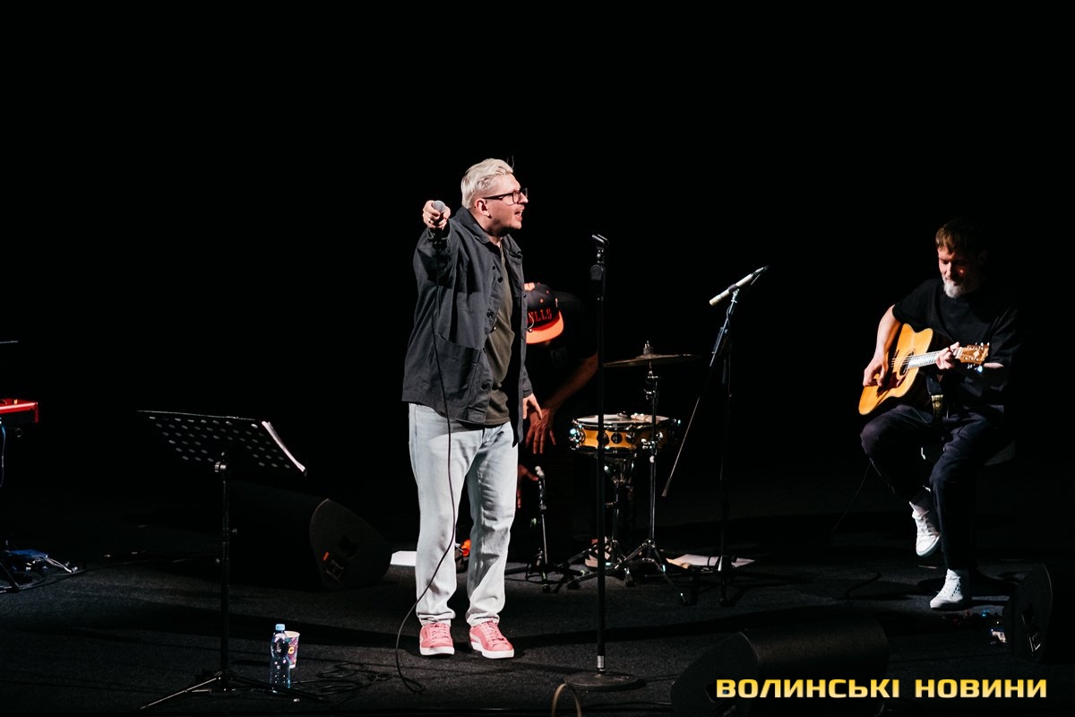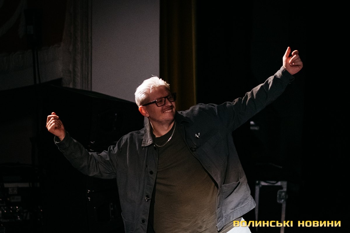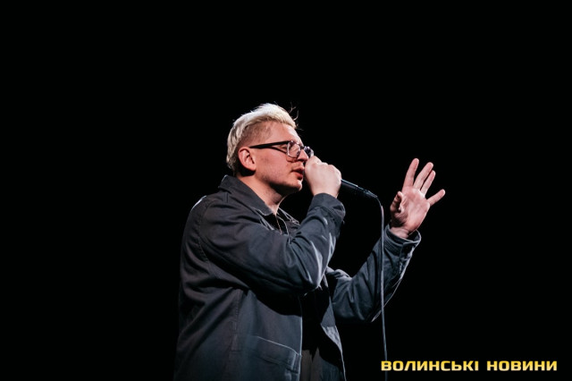 Неймовірно атмосферно звучали вірші Сергія Мартинюка в авторському виконанні.Під час концерту вже традиційно фронтмен «Фіолету» провів аукціон, кошти з якого підуть на «Мавіки» для 77-ї окремої аеромобільної бригади, яка працює на Купʼянському напрямку.«Ви знаєте, що «Мавіки» – річ недешева, але в умовах війни є розхідником. Тож ми із друзями з «Ангару» збираємо на них гроші. Маємо зібрати мільйон гривень. Вже понад 700 тисяч є, тож сподіваємося, що під час туру вдасться закрити цей збір і допомогти хлопцям та дівчатам», – висловив надію Сергій Мартинюк.І варто сказати, що шанувальники з Луцька його не підвели. Першим з молотка пішов канадський сухпайок для військових. Далі глядачам запропонували придбати синьо-жовтий стяг з автографами українських зірок. Неабияка боротьба між учасниками аукціону розгорнулася за торт із зображенням фронтмена гурту. Останнім лотом став оригінальний світшот, виготовлений у єдиному екземплярі.«Цей светрик наприкінці минулого року мені подарував один з побратимів. Светрик теплий, зимовий, з дуже прикольним принтом. Там написано «Нехай колоситься українська культура», а на колоску – багато моїх задуманих облич. І ми вирішили його, так би мовити, монетизувати. Такого ви точно більше ніде не знайдете», – заохотив Колос учасників аукціону.Читати ще: Українські актори знялися в поетичному проєкті для людей з порушенням слуху та зору