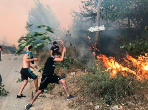 Жителі регіону Тізі-Узу в Кабілії використовували гілки дерев, щоб загасити палаючі ділянки лісу, або обливалися водою з пластикових контейнерів у відчайдушній спробі погасити вогонь.