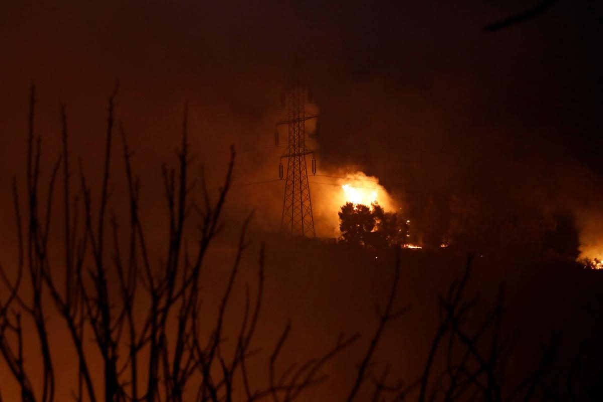 З настанням ночі понад 500 пожежників за допомогою дев’яти вертольотів, семи літаків та 305 поліцейських в густій рослинності гасили пожежу на нижніх схилах гори Парніта.