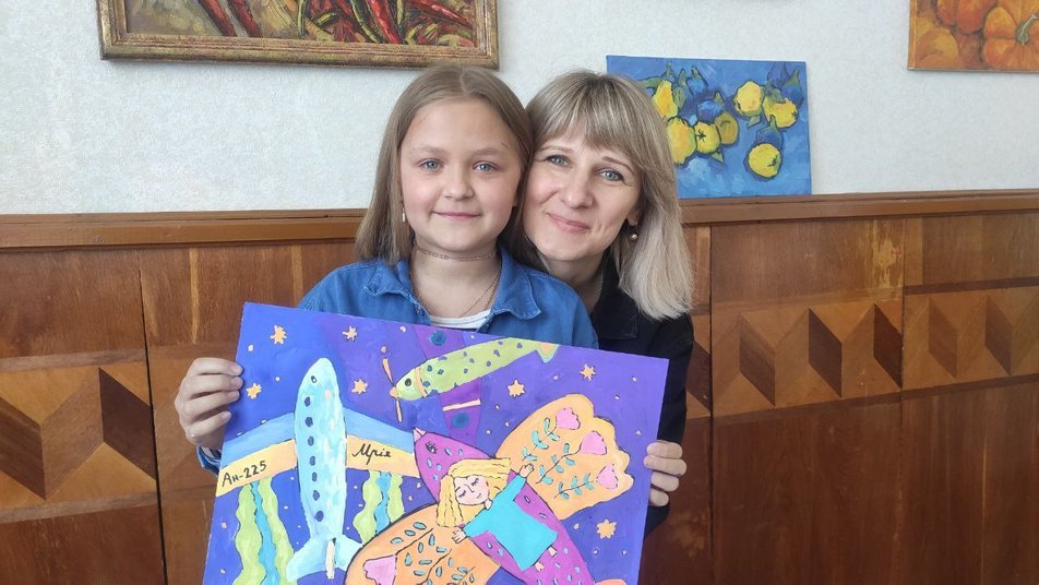 «Тут ось «Мрія», а це – дівчинка Марія і вона літає на такому птасі, жар-птиці», – говорить школярка. Каже, як дізналась, що справжню «Мрію» зруйнували, – засмутилась, проте вірить, що літак відбудують.Викладачка Софії Оксана Богута каже, що роботу дівчинки відібрали на конкурсі ілюстрацій «Що для мене Україна».Переможниця конкурсу разом із викладачкою