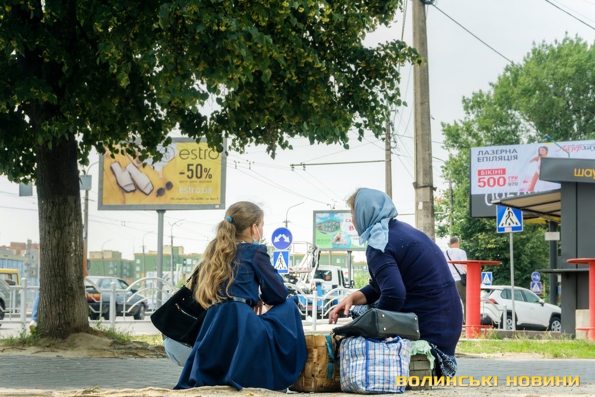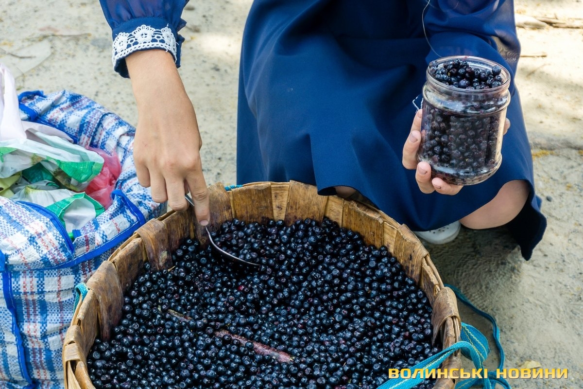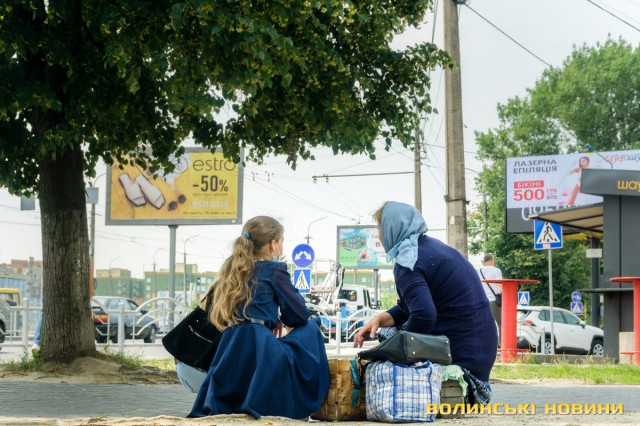 За полуницею тим часом шикується черга, тож ми бажаємо панові Миколі доброго врожаю та файної виручки й чимчикуємо далі.Погляд спиняється на жінці й дівчинці, які продають чорниці з величезного плетеного кошика. Це мама з донькою. Невеличка русява дівчинка вправно допомагає мамі, припрошує перехожих купувати свіжі ягідки.«Ми з Олениного, що на Камінь-Каширщині, – усміхається блакитними, як її хустина, очима пані Галина. – Приїхали в лікарню з Лізою. То, думаю, піду ягід наберу, щоб хоч дорогу вернути. Тяжко в селі самій з дітьми раду давати. Маю ще старшого сина, він хворіє, то стараюся заробити копійку, як можу. За кордон не їду на заробітки, бо як же дітей покинути?»