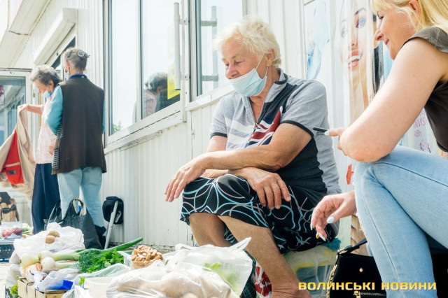Жінка каже, що торг нині – так собі.«Особливо неохоче щось купують у кінці місяця. Нема дуже в людей тих грошей, – хитає головою. – А багато хто йде в супермаркет і набирає там всього тачками. У нас же – все своє, оцими руками вирощене, без хімії. Але чогось беруть заморські продукти в магазині».
