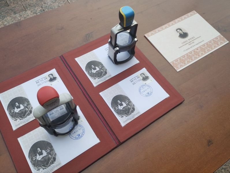 Також до річниці від дня народження Олени Пчілки «Укрпошта» та «Козацька пошта» випустили блок ювілейних марок та конверт. Над проєктом працювали наукові співробітники Колодяжненського літературно-меморіального музею Лесі Українки та завідувачка Музею Лесі Українки Волинського національного університету імені Лесі Українки Тетяна Данилюк-Терещук.До першого блоку марок увійшли світлини Олени Пчілки, надані Музеєм видатних діячів української культури завдяки співпраці із завідувачкою Київського музею Лесі Українки Іриною Щукіною та співробітницею цього музею Аллою Дибою. Використані у другому блоці світлини узорів та писанок, що їх збирала Ольга Драгоманова-Косач, походять з фондів Колодяжненського літературно-меморіального музею Лесі Українки.Під час погашення марки штемпелем «Укрпошти» на конверті було поставлено штамп із використанням нового логотипа музею. У спецпогашенні взяли участь директорка обласної філії АТ «Укрпошта» Валентина Варголяк, засновник проєкту «Козацька пошта», автор штампу, присвяченого садибі Косачів, Андрій Пелих, голова Комітету з питань гуманітарної та інформаційної політики Верховної Ради України, народний депутат України Микита Потураєв, перша заступниця Комітету, народна депутатка України Ірина Констанкевич, т. в. о. обов’язків міністра культури та інформаційної політики Ростислав Карандєєв, заступник голови Волинської обласної військової адміністрації Тарас Шкітер, голова Волинської обласної ради Григорій Недопад.Після проведення реставраційно-ремонтних робіт меморіальних будинків Косачів другим важливим кроком стало брендування музею, яке втілила в життя компанія PaRtyzan. В основу брендування заклали неофіційну назву музею – садиба Косачів.