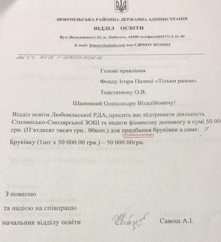 Відділ освіти Любомльської РДА за кошти Фонду Ігоря Палиці «Тільки разом» замовив бруківку для школи у місцевого підприємця за ціною, яка майже вдвічі вища за ринкову.