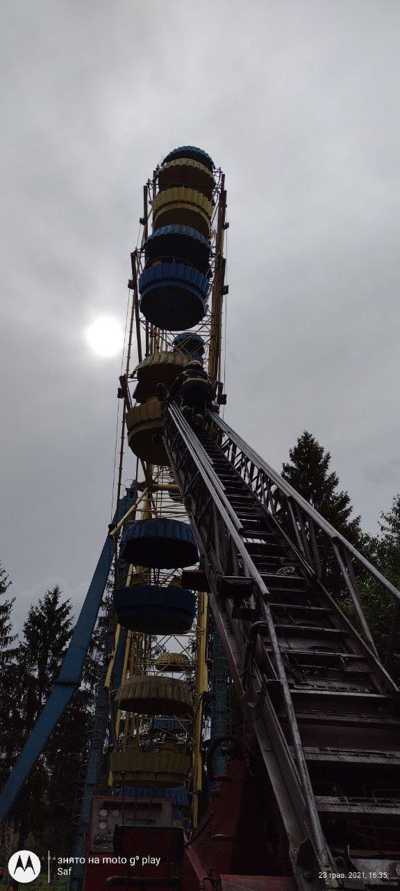 23 травня о 16:00 рятувальники отримали інформацію про те, що центральному парку імені Лесі Українки зупинилося оглядове колесо, на якому перебуває 12 осіб, з яких – 6 дітей.