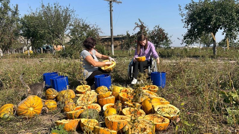 «Вони це теж люблять і під’їдають добре, так що воно у нас не пропадає. Процес вибирання гарбузів довгий, триває до самої зими, навіть буває, що до самого Нового року», – каже господиня.