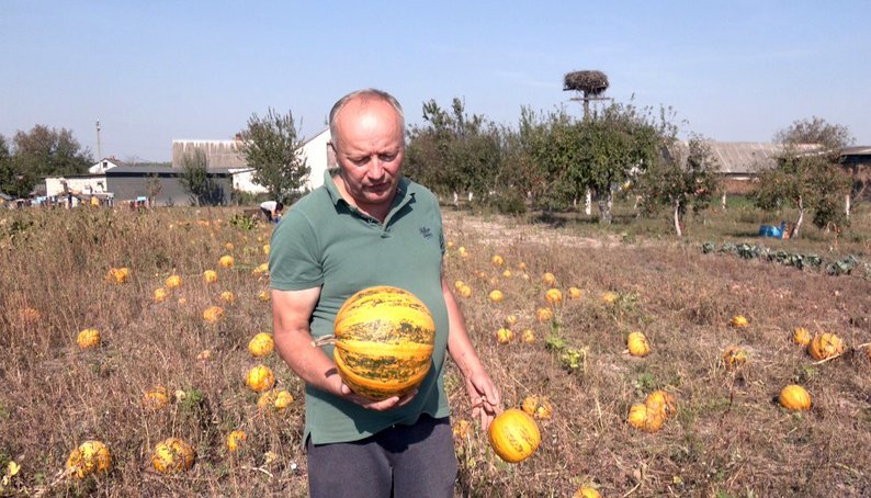 Гарбузи для корму свійським тваринам в селі Майдан вирощують чи не в кожному дворі, а от в сім’ї Шевчуків акцент роблять саме на насінні, каже господар Олександр Шевчук.Чоловік вирощує голонасінні сорти без хімії.