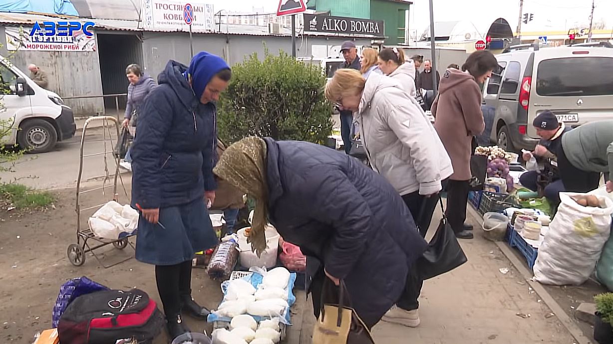Валерій, який продає м’ясо на ринку, каже: «Хлопців скільки позабирали – то й відносно набагато менше людей бере м’ясо. Ну, в ідеалі, щойно взяли 12 кілограмів, то це вже супер взяли. А так – 3-5 кілограмів беруть. Кусочок м’яска, кусочок бочка, кусочок невеличкий на ковбаску, та й все».