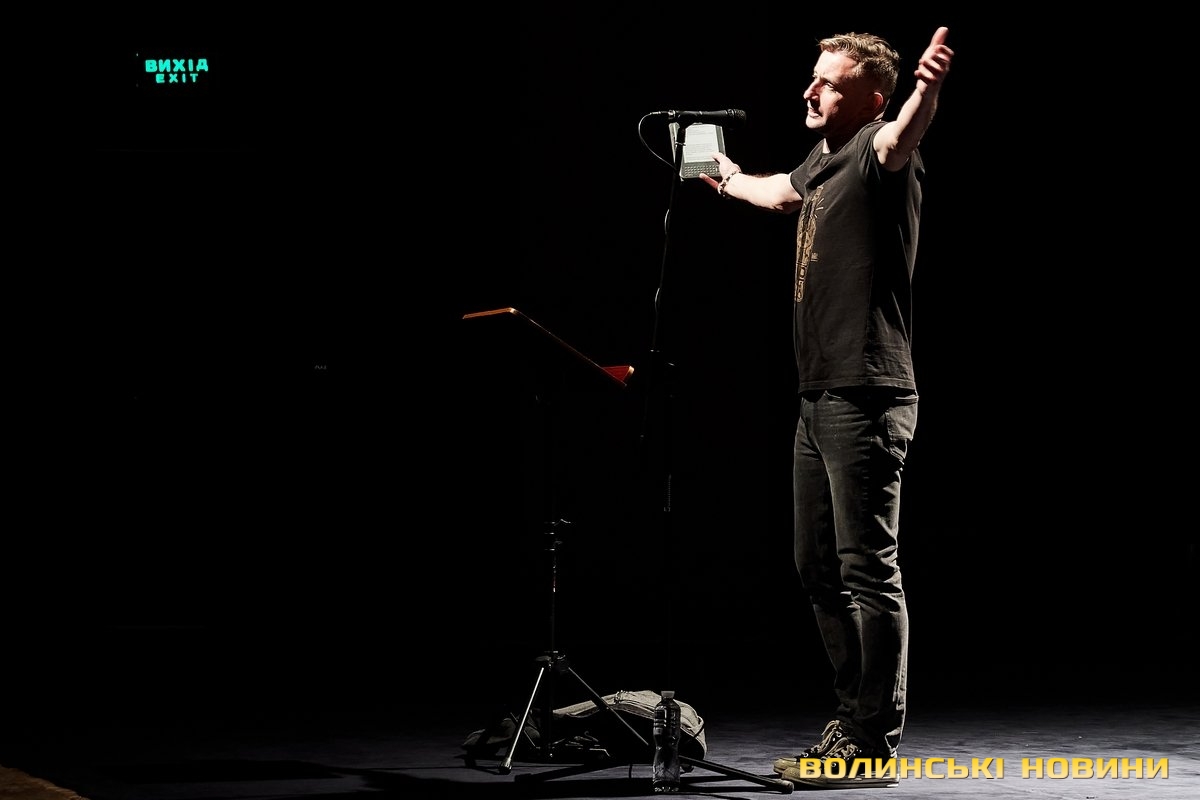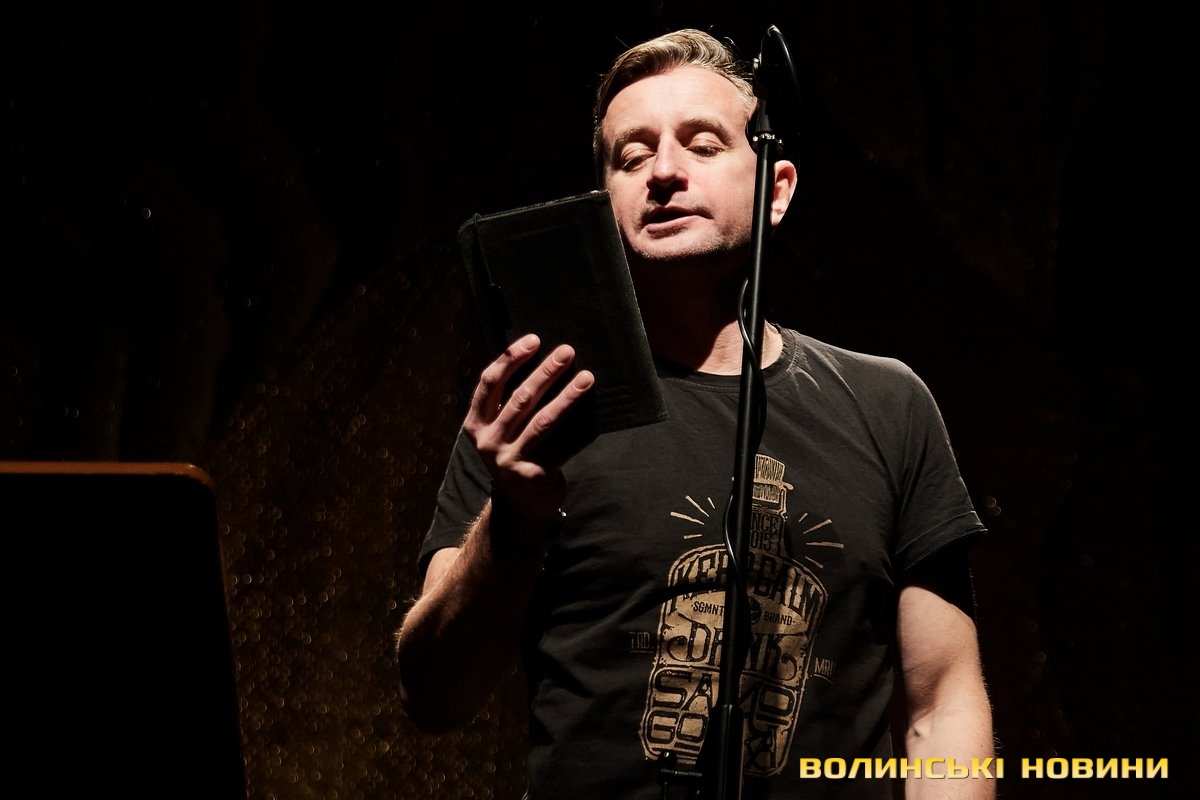 10 березня зі сцени театру звучали вірші. Сумні, тужливі, різкі, філософські, ліричні – різні. Об’єднує їх одне: Сергій Жадан ділиться своїм баченням навколишнього. І воно сповнене надії та кохання, хоча видається похмурим та без зайвих прикрас.
