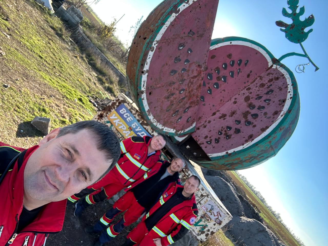 Інформаційне агентство Волинські Новини поспілкувалося з медичним директором, лікарем із медицини невідкладних станів відділу медицини катастроф центру екстреної меддопомоги та медицини катастроф Анатолієм Каленюком, фельдшерами з медицини невідкладних станів відділу медицини катастроф Сергієм Процем і Олександром Гережуном, водієм Ярославом Власюком. Саме вони першими серед своїх колег зголосилися поїхати на звільнену Херсонщину.Зліва направо: фельдшер Олександр Гережун, фельдшер Сергій Проць, водій Ярослав Власюк і лікар Анатолій Каленюк