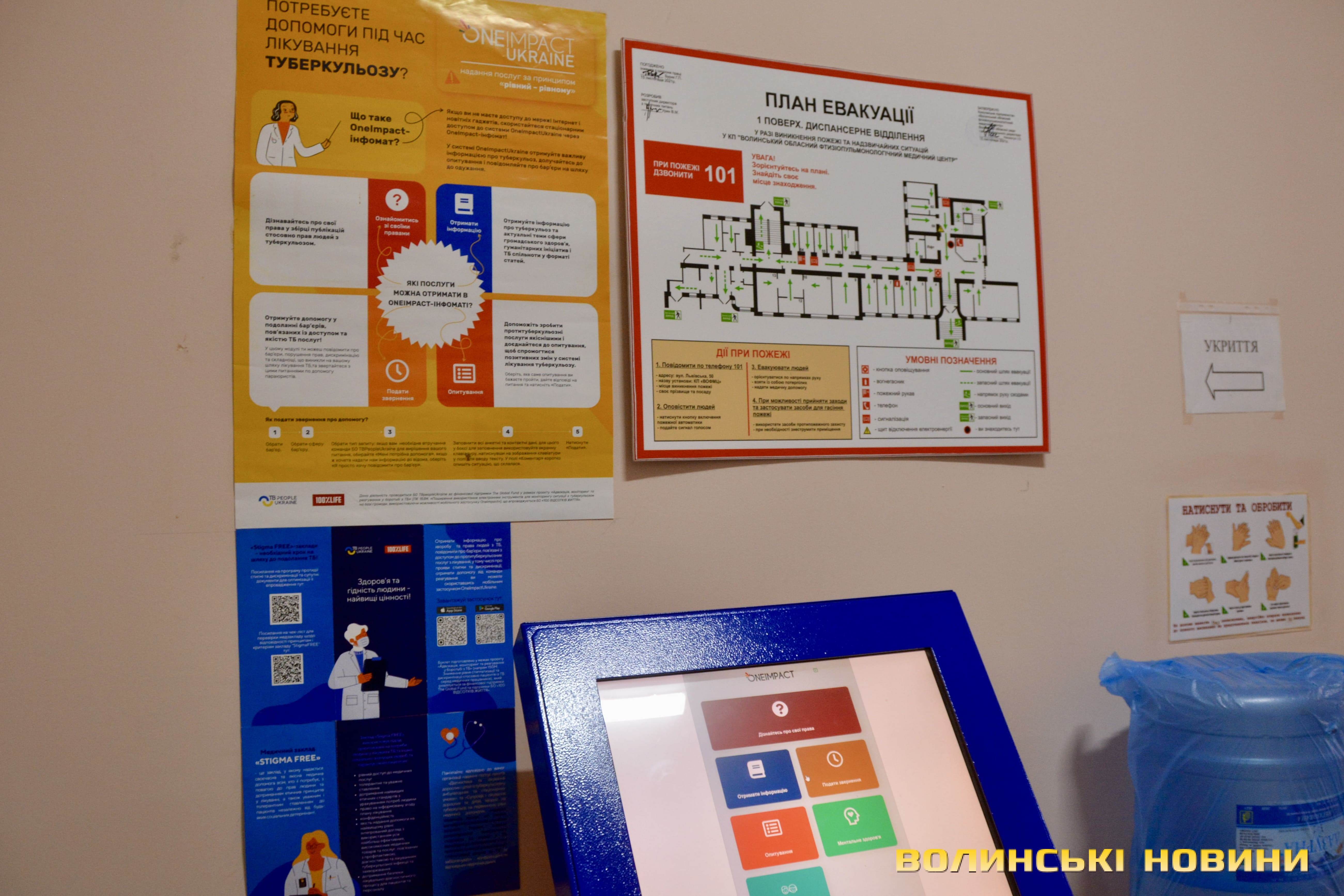 Як вона пояснила, зараз супровід і лікування пацієнтів із туберкульозом забезпечують на рівні первинної медичної допомоги, тобто сімейний лікар бере активну участь у лікуванні пацієнтів із туберкульозом. Своєю чергою фтизіатр визначає дозування препаратів і за потреби коректує побічні ефекти. Звичайно, фтизіатр не залишається остронь і може бути залучений на будь-якому етапі лікування.Коридори Волинського обласного фтизіопульмонологічного центру. Пацієнти, які все-таки потрапляють у стаціонар лікарні, як правило, вже мають тяжкі форми захворювання