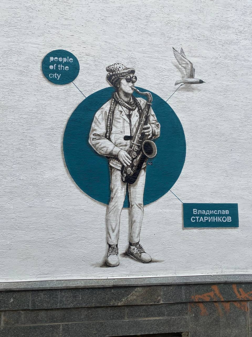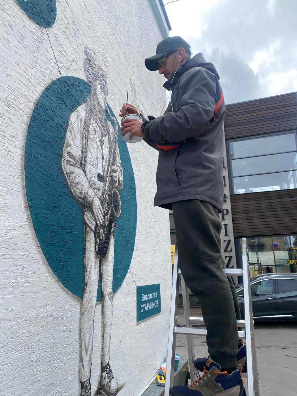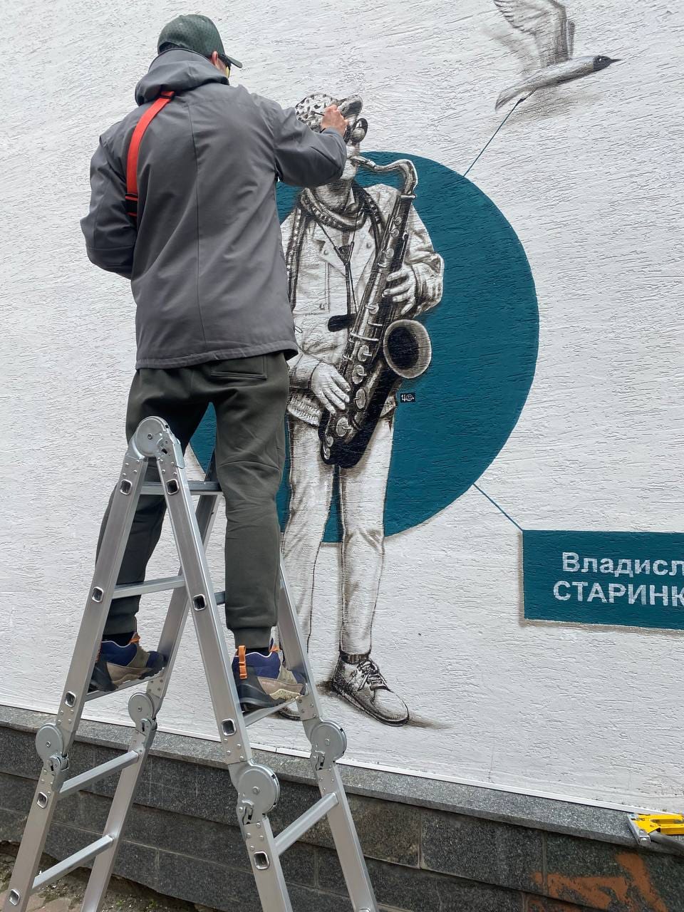 Луцький художник Юрій Чайка створив новий мурал. Цього разу він зобразив вуличного музиканта Владислава Старинкова, якого знають чи не всі лучани.