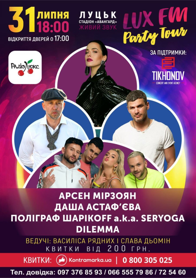 У рамках туру радіостаніції «Люкс ФМ» містами України найтоповіші артисти дадуть концерт в Луцьку. «LUX FM Party Tour» відбудеться на стадіоні «Авангард» вже 31-го липня о 18:00.