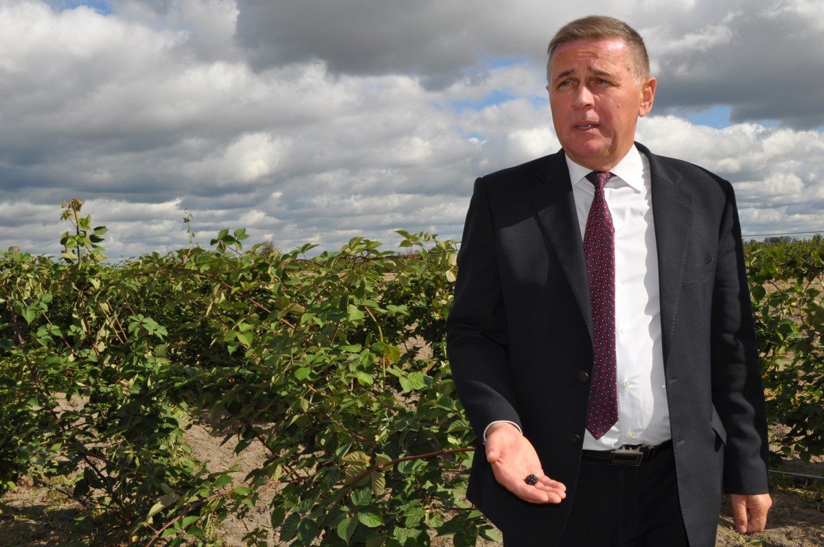 Начальник департаменту агропромислового розвитку Волинської ОДА Юрій Горбенко на ягідній плантації. Фото з сайту slovopravdy.com.ua