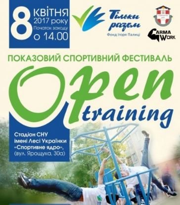 Показовий спортивний фестиваль OPEN TRAINING відбудеться у Луцьку в суботу, 8 квітня на стадіоні СНУ імені Лесі Українки.