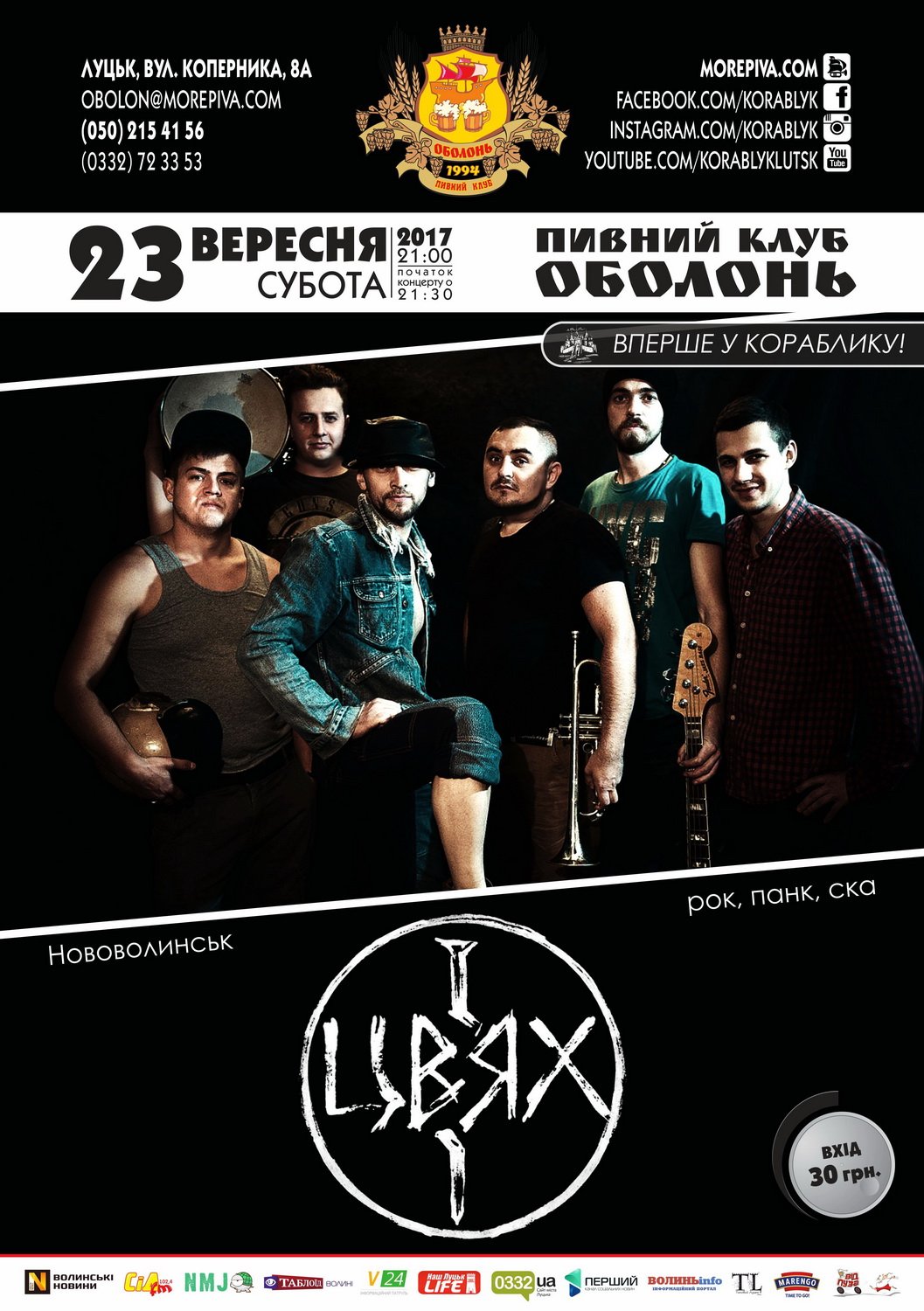 Надзвичайно позитивна та драйвова банда під назвою «Цвях» вперше виступить у луцькому пивному клубі «Оболонь» («Кораблик»). Концерт відбудеться у суботу, 16 вересня о 21.30.