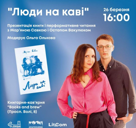 Презентація книги Мар’яни Савки «Люди на каві» відбудеться 26 березня о 16.00 у луцькій книгарні-кав’ярні «Books and Brew» (проспект Волі, 8).