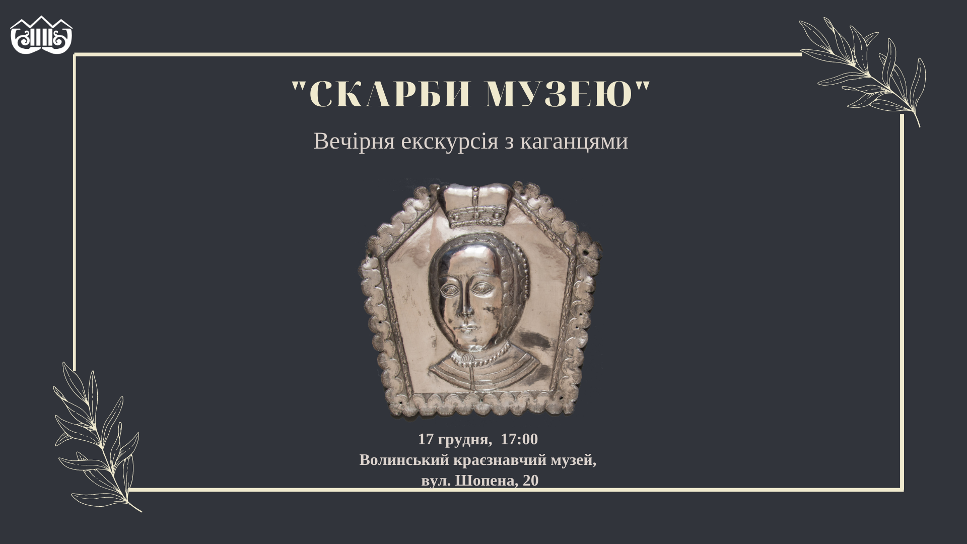 Чекаємо вас 17 грудня о 17:00 у Волинському краєзнавчому музеї за адресою вул. Шопена, 20.