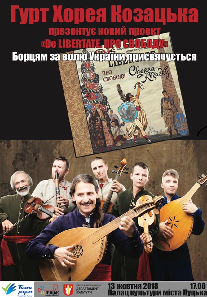 13 жовтня в рамках відзначення Дня захисника України у Палаці культури міста Луцька за підтримки фонду Ігоря Палиці «Тільки разом» Луцька міська рада організовує концерт – презентацію нового альбому гурту «Хорея Козацька» «De Libertate. Про Свободу».
