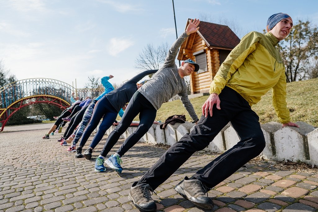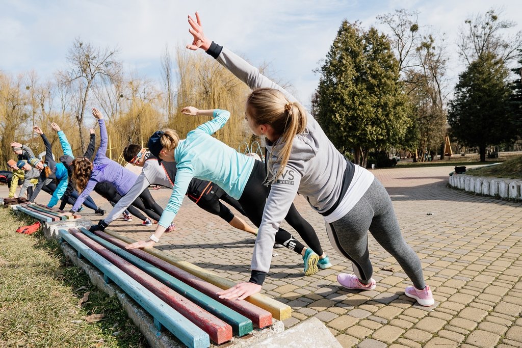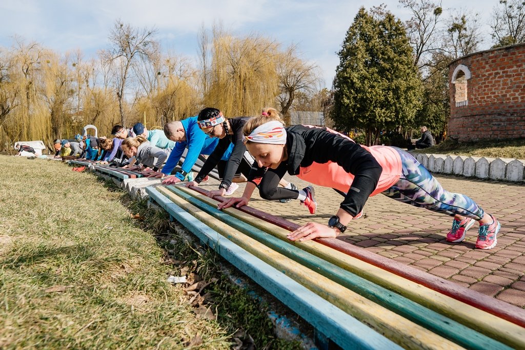 «Оскільки 8 березня було в п’ятницю, то вирішили нашу пробіжку організувати 9-го березня й присвятити її дівчатам. Але звісно запрошували і хлопців! Мою ініціативу підтримала й кваліфікований тренер, яка працює в мережі спорт клубів «Інтератлетика» Ірина Алендар. Анонсували через сторінку нашого клубу в інстаграмі та через групу у Фейсбук. Вона погодилась провести комплекс фізичних вправ для всіх. У суботу, 9-го березня, нас прийшло орієнтовно 21-22 людини. Це дуже приємно здивувало й надихнуло. Ми пробігли 5 кілометрів – 2 кола. Початківців закликали бігти менше, виходячи із власних сил. Бо починати треба в міру, з розумом. Потім Ірина провела для нас тренування. Були присідання, випади, махи, віджимання, біг на місці, вправи на прес. Різноманітні вправи, для загального навантаження і укріплення м’язів», – каже Катерина.