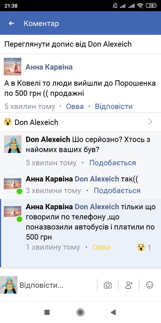 «А в Ковелі то люди вийшли підтримати Порошенка за 500 гривень. Продажні», – йдеться у дописі.