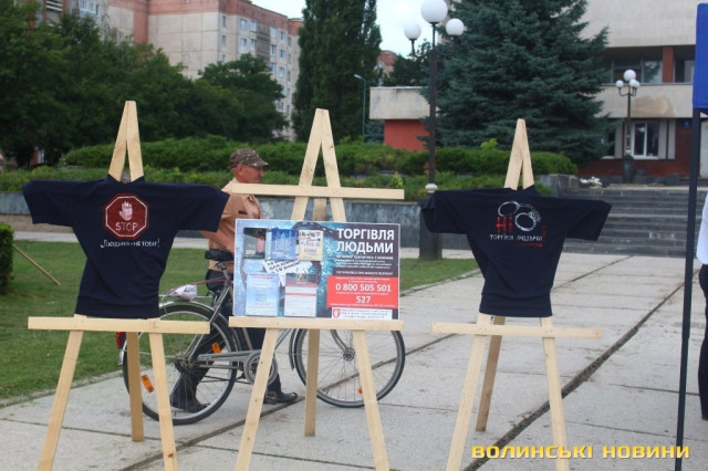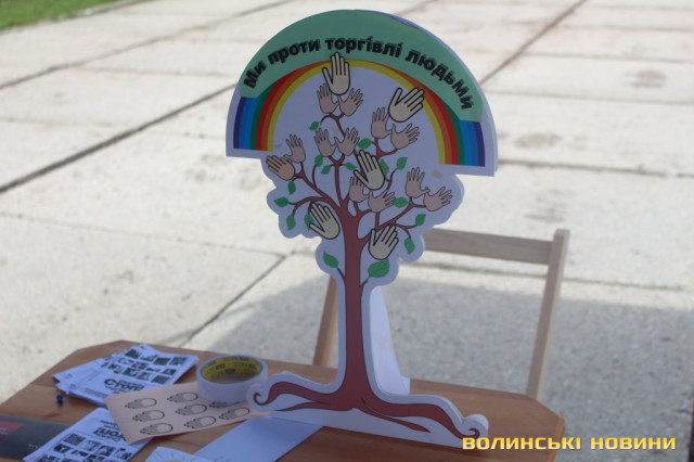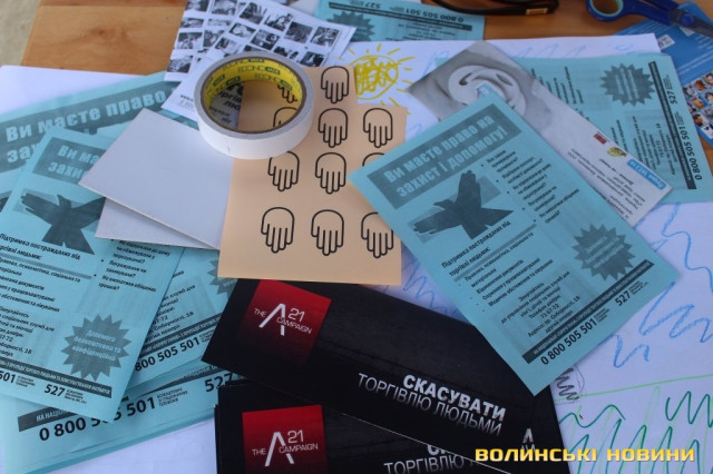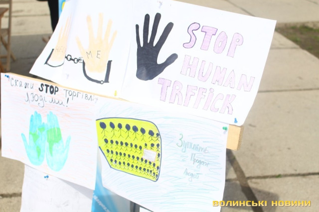 Що потрібно робити, якщо ви виявили факти торгівлі людьми, як убезпечити себе та своїх близьких, а також як підтримати постраждалих – брошури з відповідною інформацією кожен перехожий міг отримати на площі Героїв Майдану в Луцьку.