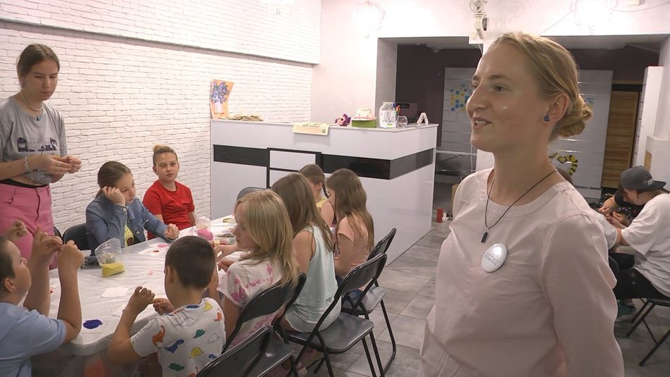 Дівчина каже: за цей час не мала жодного вихідного, адже організовує та координує роботу волонтерів. У центрі їх наразі працює кілька десятків.Спортивні заняття для дітей організовує 20-річна волонтерка Анасатсія Грицак. Дівчина була тренером місцевої футзальної жіночої команди, нині перекваліфікувалася та займається з дітьми та дорослими.