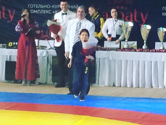 Маленька спортсменка провела напружені переможні поєдинки, які дозволили суддівській колегії визнати її кращим бійцем турніру та нагородити кубком кращого бійця.