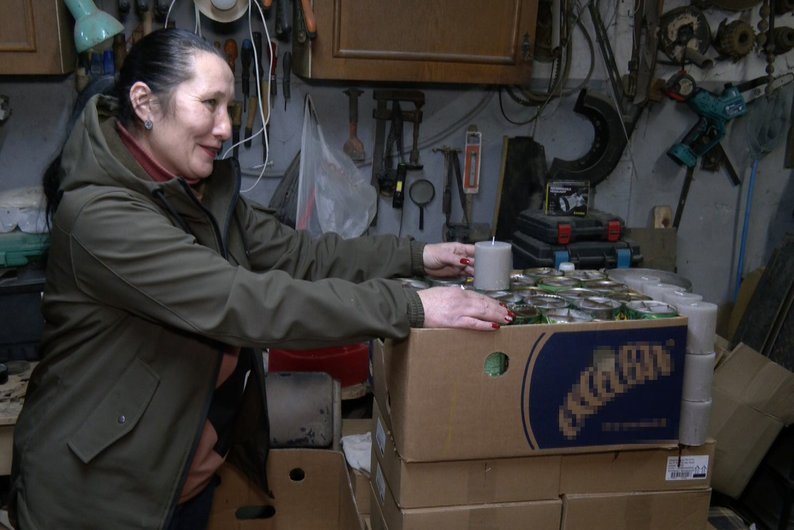 Чоловік Тетяни Коваль пішов служити на початку повномасштабної війни. Зі слів жінки, поки господар у війську, у його майстерні вона разом із подругами виготовляє окопні свічки.