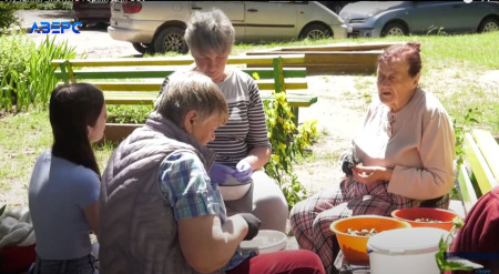 У дворі на вулиці Ветеранів, 9 триває робочий процес. Ніна Лопушан, Валентина Парфенюк, Ніна Ісаєва та Людмила Мельник чистять горіхи. Готовий продукт вони передають у село Боратин. Там збирають енергетичні пакунки для захисників. До їх складу, окрім сушенини, родзинок, входять горіхи, йдеться в сюжеті ТРК «Аверс».