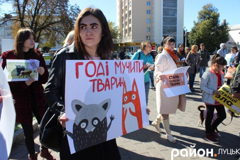 Близько півсотні лучан зібралося сьогодні у центрі міста на Театральній площі, аби долучитися до Всеукраїнського маршу за права тварин, який вже традиційно восени організовує Uanimal.