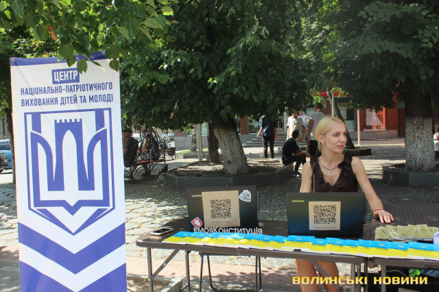 Загальноміська акція «Моя Конституція» триває на головній пішохідній вулиці Луцька Лесі Українки в переддень свята Конституції 27 червня.