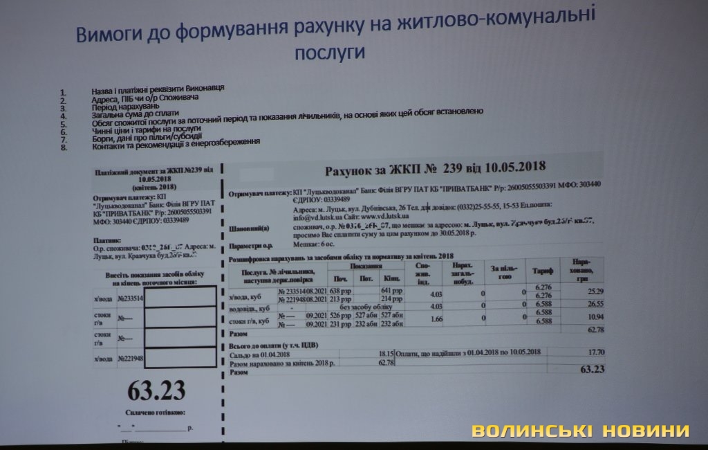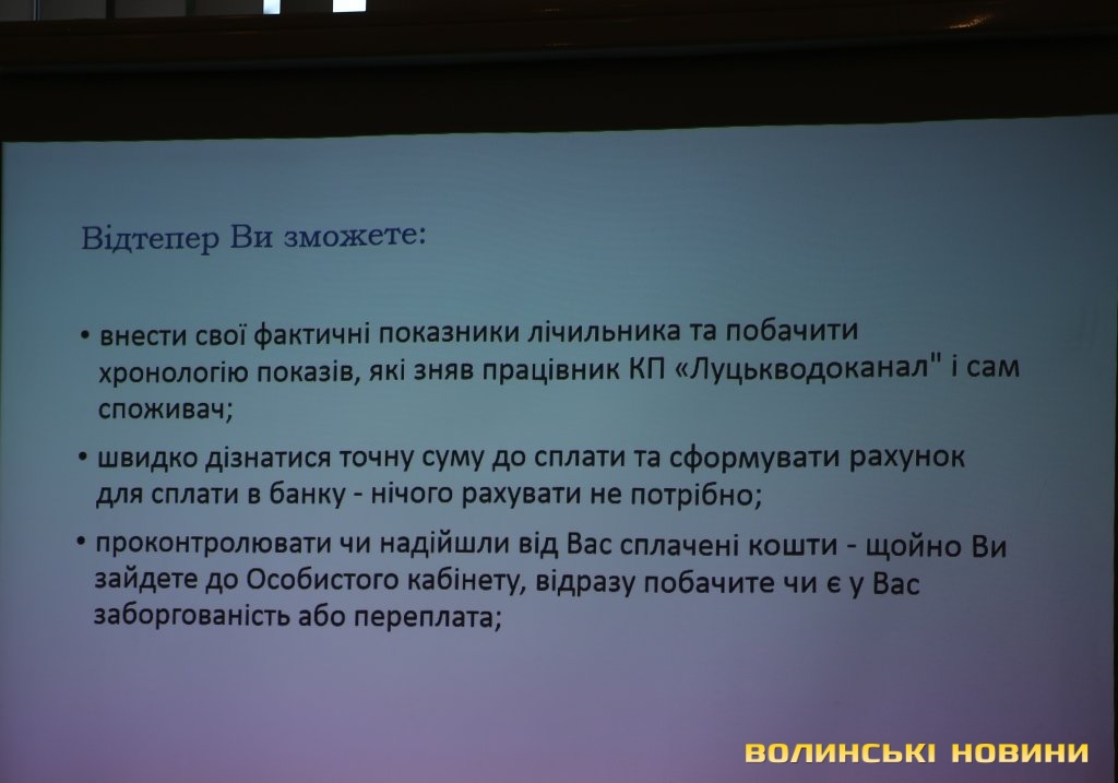 Як зауважив перший заступник директора КП «Луцькводоканал» Віктор Гуменюк, протягом останніх двох місяців спостерігається активність споживачів. Обов’язком надавача послуг є формування розрахункового документа. Наразі споживач може самостійно надавати показники, а якщо показник він не подав, цей показник визначає надавач послуг на основі інформації про 12 останніх розрахункових періодів.