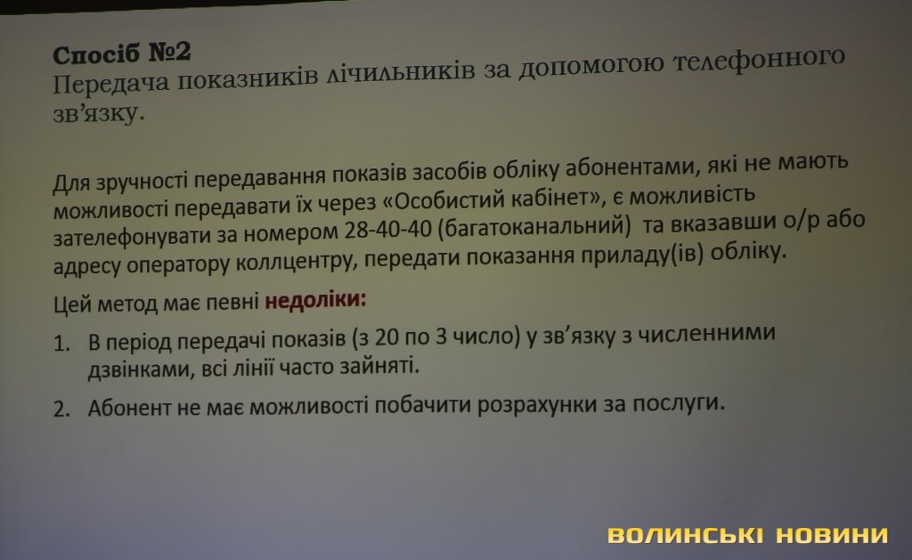 Другим способом повідомлення показників буде дзвінок на номер кол-центру: у квітні існували певні проблеми через завантаженість лінії, а тепер лінію вдосконалять, зробивши багатоканальною з голосовим меню.
