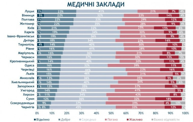 Найкраще свою медицину оцінюють у Вінниці та Луцьку (27 і 26% відповідно).