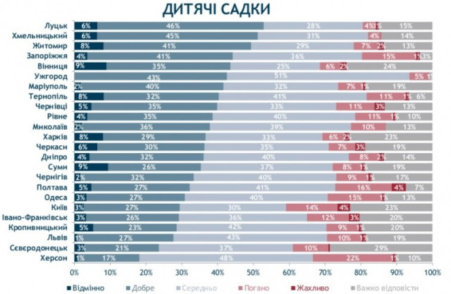 Найбільш незадоволені садочками містяни Херсона. Лише 18% оцінили їх добре і 23% – погано.