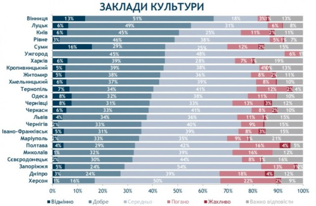 За опитуванням українців, найкращими в країні є заклади культури Вінниці. Ними задоволені 64% мешканців.