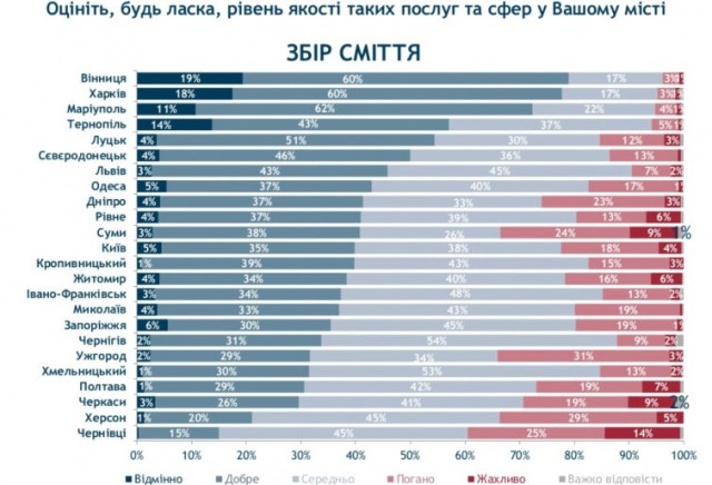 У якості послуг зі збору сміття теж лідирують вінничани.