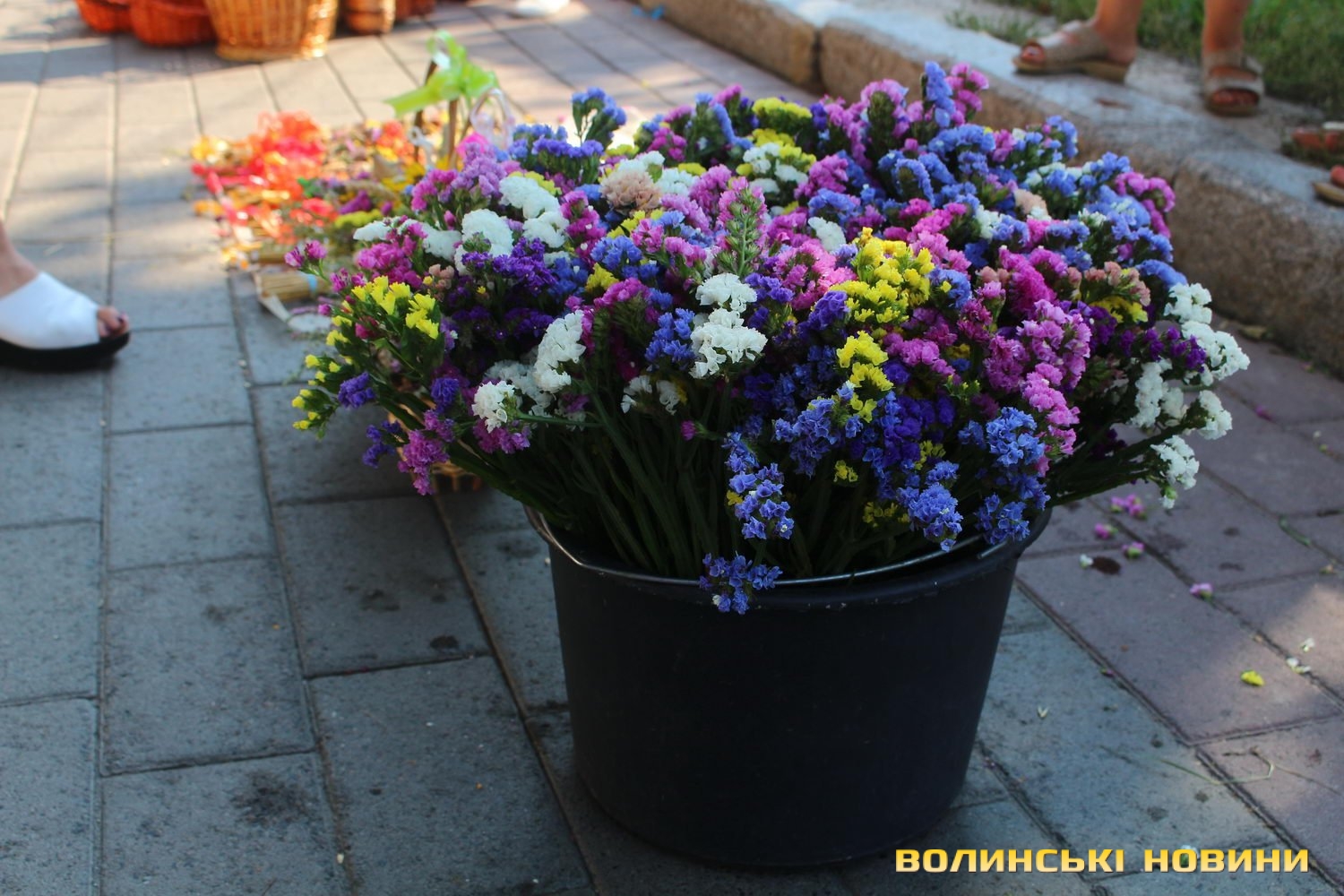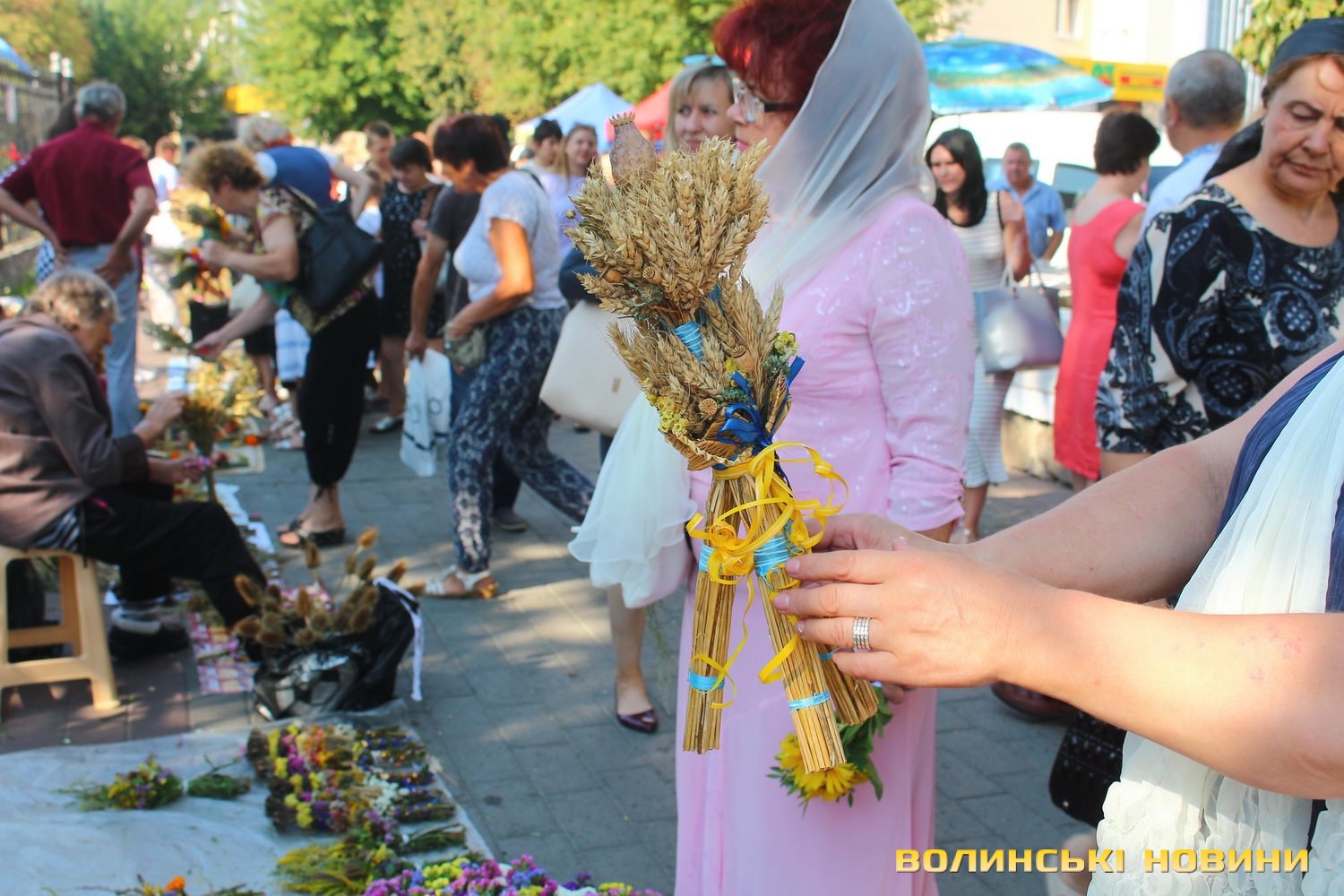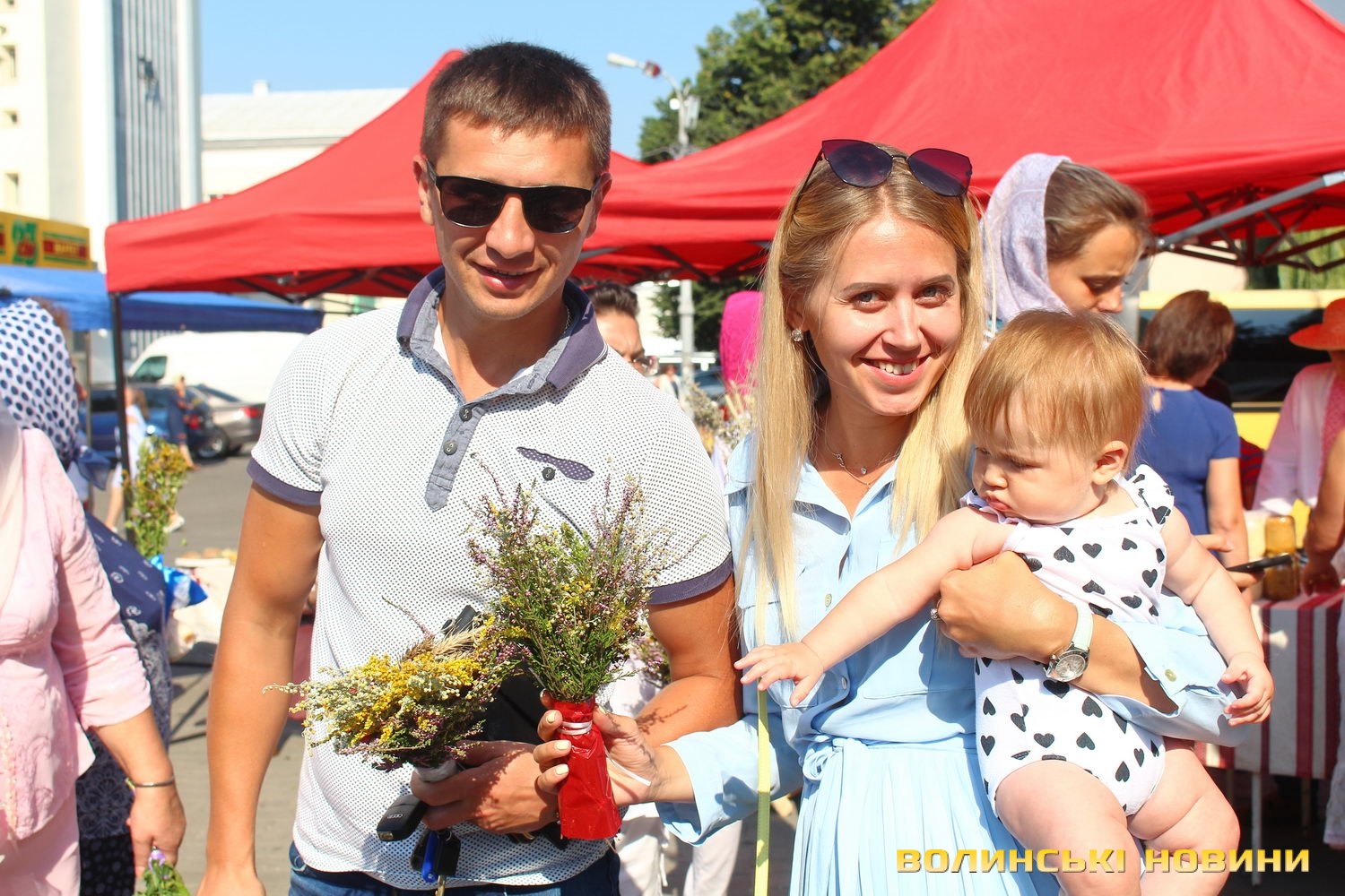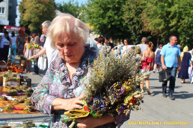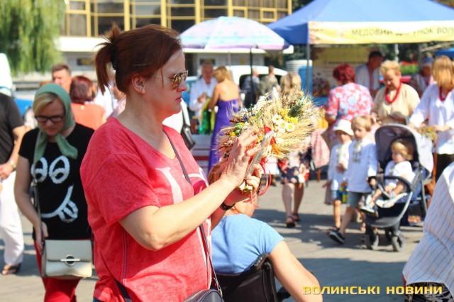 Тож із самого ранку на центральній площі Луцька, біля Свято-Троїцького кафедрального собору, людно: лучани поспішають обрати «правильний» букетик у однієї з торговець квітами, придбати поряд мед, аби пізніше все це освятити та принести додому.
