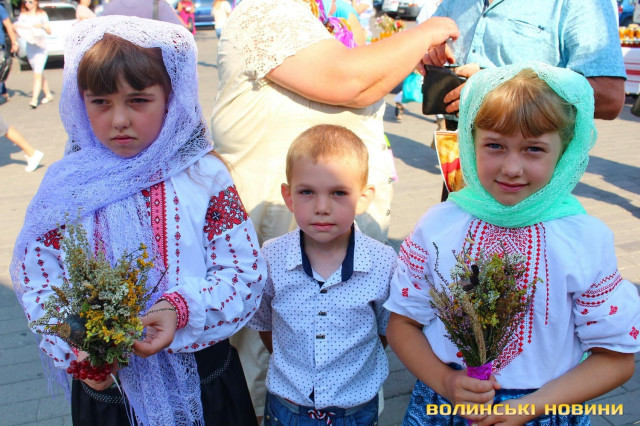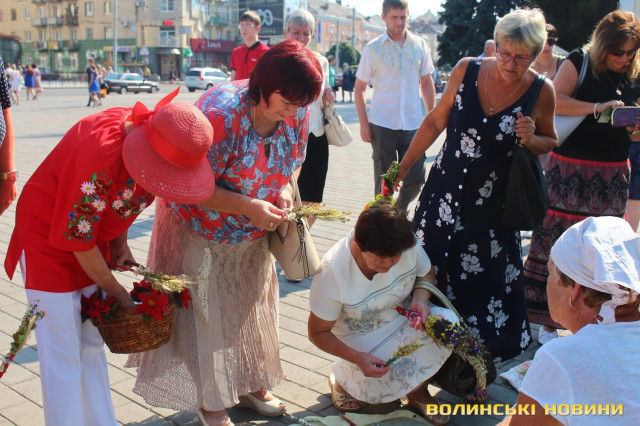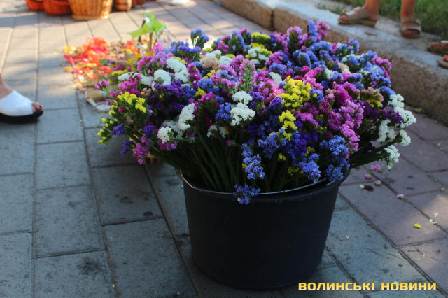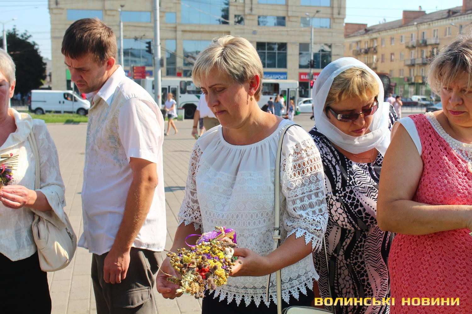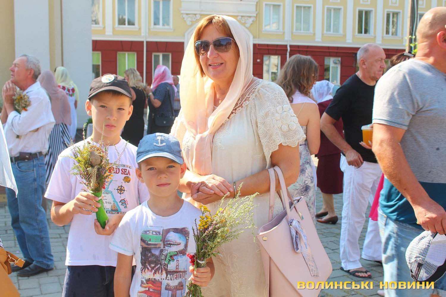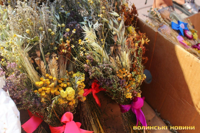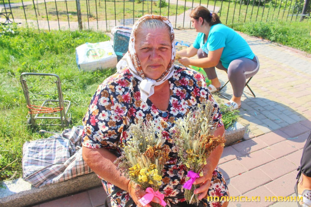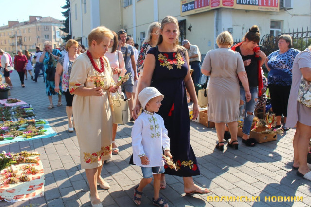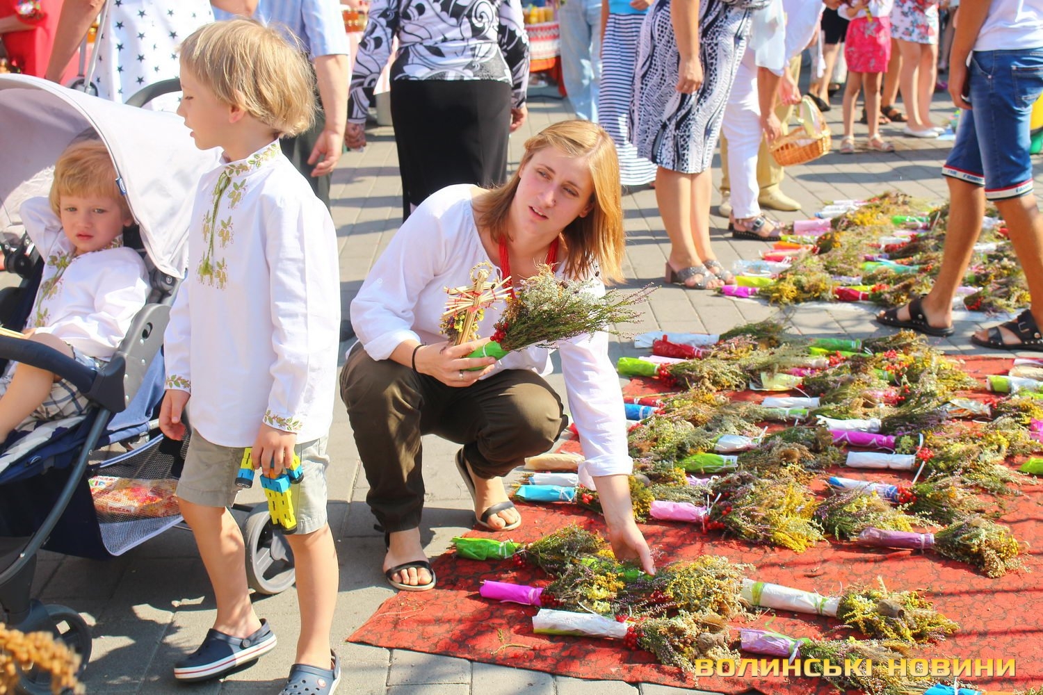 Тож із самого ранку на центральній площі Луцька, біля Свято-Троїцького кафедрального собору, людно: лучани поспішають обрати «правильний» букетик у однієї з торговець квітами, придбати поряд мед, аби пізніше все це освятити та принести додому.