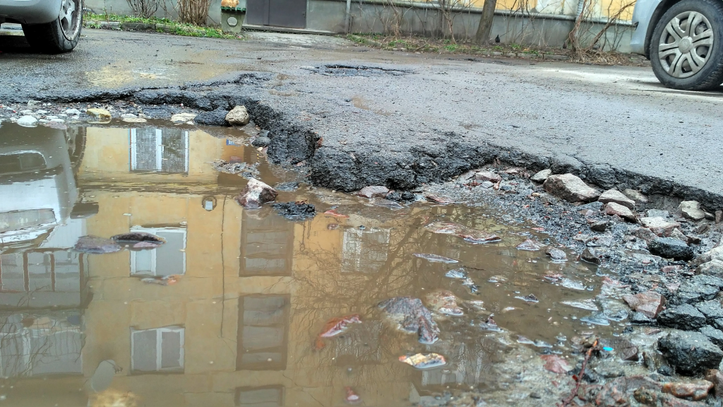 Містяни просять відремонтувати проїжджу частину та облаштувати тротуари в прибудинковій території, що на проспекті Перемоги, 25, 25а.
